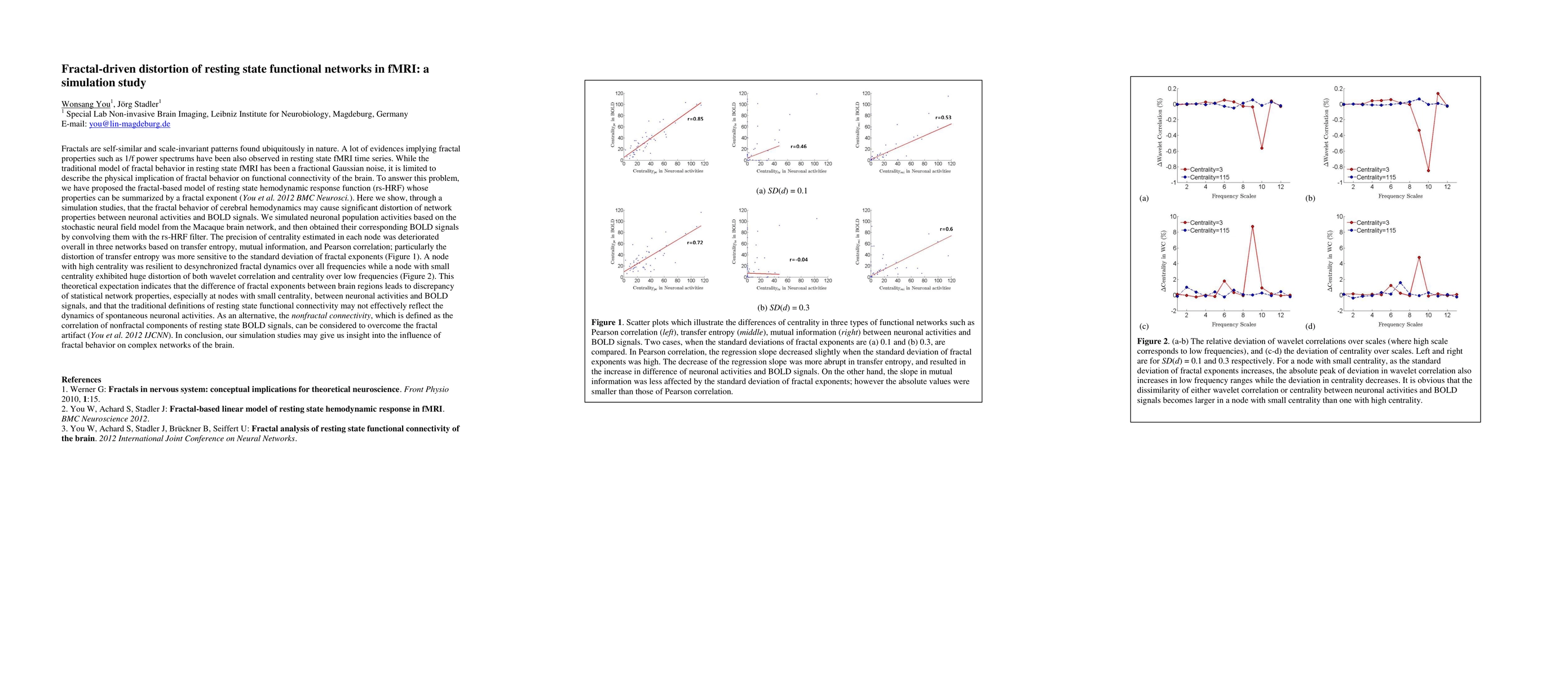 Fractals are self-similar and scale-invariant patterns found ubiquitously in nature. A lot of evidences implying fractal properties such as 1/f power spectrums have been also observed in resting state fMRI time series. To explain the fractal behavior in rs-fMRI, we have proposed the fractal-based model of resting state hemodynamic response function (rs-HRF) whose properties can be summarized by a fractal exponent. Here we show, through a simulation studies, that the fractal behavior of cerebral hemodynamics may cause significant distortion of network properties between neuronal activities and BOLD signals. We simulated neuronal population activities based on the stochastic neural field model from the Macaque brain network, and then obtained their corresponding BOLD signals by convolving them with the rs-HRF filter. The precision of centrality estimated in each node was deteriorated overall in three networks based on transfer entropy, mutual information, and Pearson correlation; particularly the distortion of transfer entropy was more sensitive to the standard deviation of fractal exponents. A node with high centrality was resilient to desynchronized fractal dynamics over all frequencies while a node with small centrality exhibited huge distortion of both wavelet correlation and centrality over low frequencies. This theoretical expectation indicates that the difference of fractal exponents between brain regions leads to discrepancy of statistical network properties, especially at nodes with small centrality, between neuronal activities and BOLD signals, and that the traditional definitions of resting state functional connectivity may not effectively reflect the dynamics of spontaneous neuronal activities.