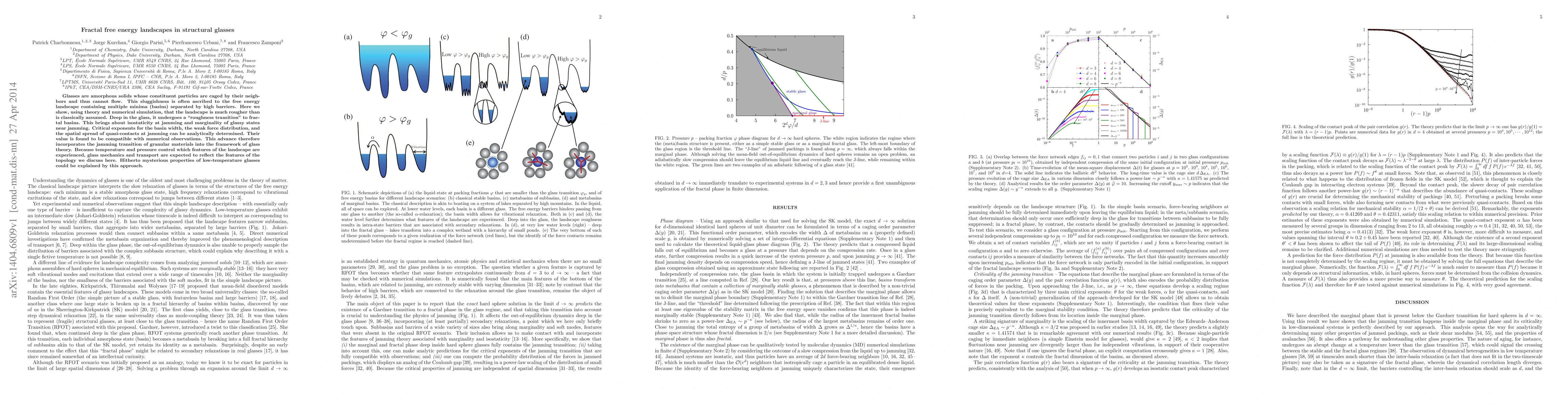 Glasses are amorphous solids whose constituent particles are caged by their neighbors and thus cannot flow. This sluggishness is often ascribed to the free energy landscape containing multiple minima (basins) separated by high barriers. Here we show, using theory and numerical simulation, that the landscape is much rougher than is classically assumed. Deep in the glass, it undergoes a "roughness transition" to fractal basins. This brings about isostaticity at jamming and marginality of glassy states near jamming. Critical exponents for the basin width, the weak force distribution, and the spatial spread of quasi-contacts at jamming can be analytically determined. Their value is found to be compatible with numerical observations. This advance therefore incorporates the jamming transition of granular materials into the framework of glass theory. Because temperature and pressure control which features of the landscape are experienced, glass mechanics and transport are expected to reflect the features of the topology we discuss here. Hitherto mysterious properties of low-temperature glasses could be explained by this approach.