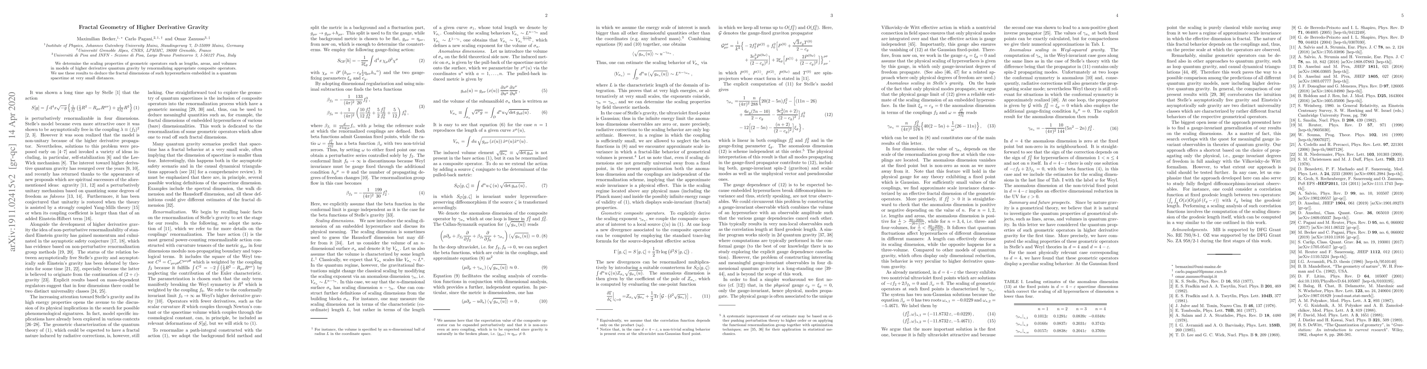Researchers studied the geometry of higher derivative gravity and found fractal dimensions at very small distances, shedding light on the scaling properties of geometric operators in quantum spacetime.