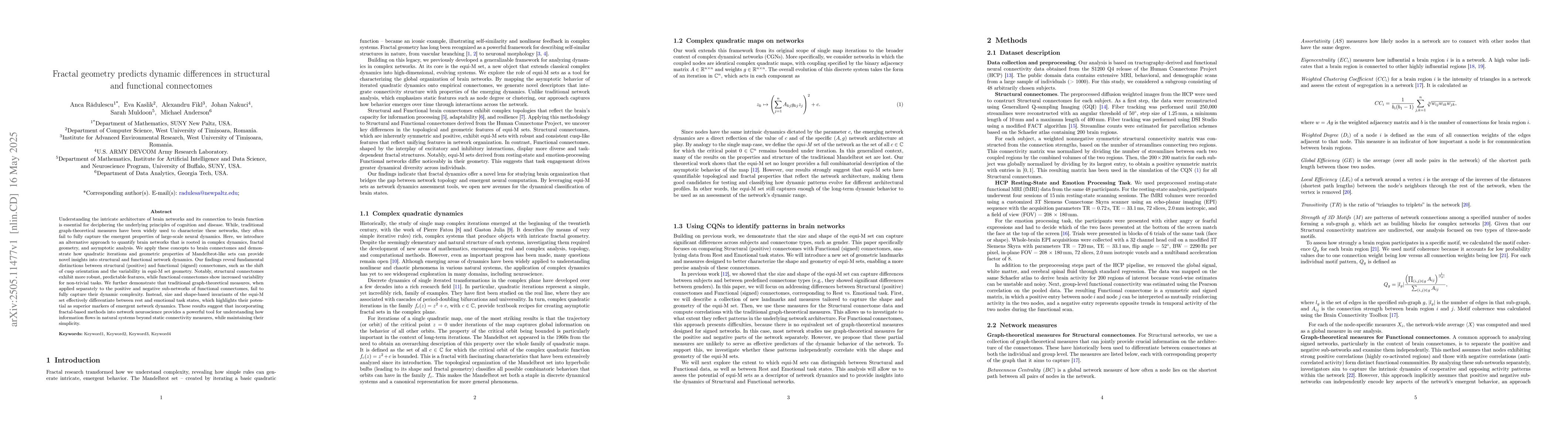 The paper presents a novel application of fractal geometry and complex dynamics to characterize brain networks, offering size and shape-based invariants as superior markers of emergent network dynamics.
