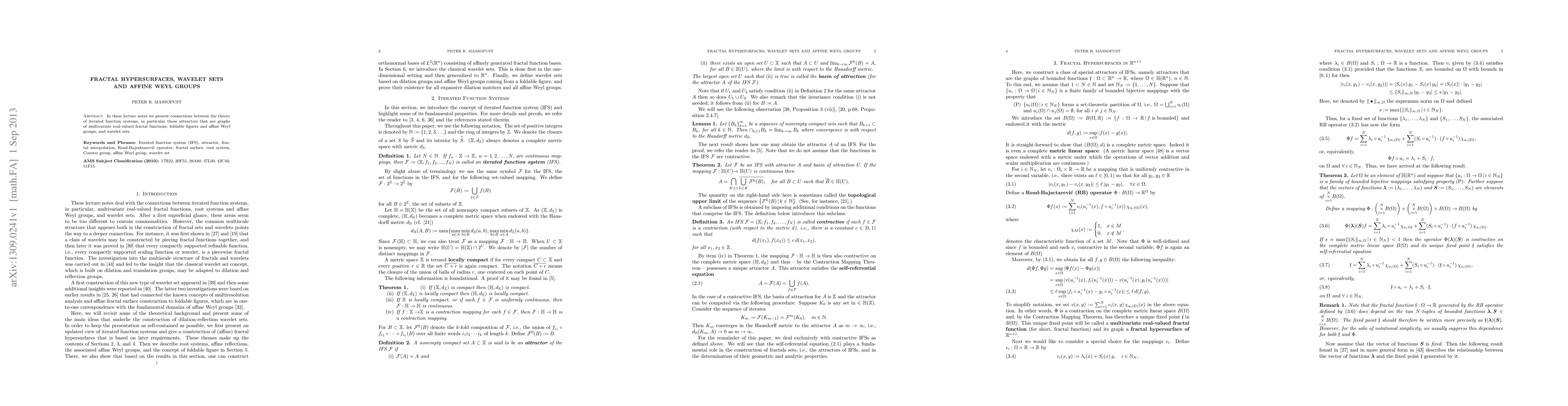 This paper explores the relationships between iterated function systems, fractal hypersurfaces, wavelet sets, and affine Weyl groups, focusing on how fractal attractors and foldable figures relate to these mathematical structures. The study highlights the interconnectedness of these areas through the lens of wavelet sets.