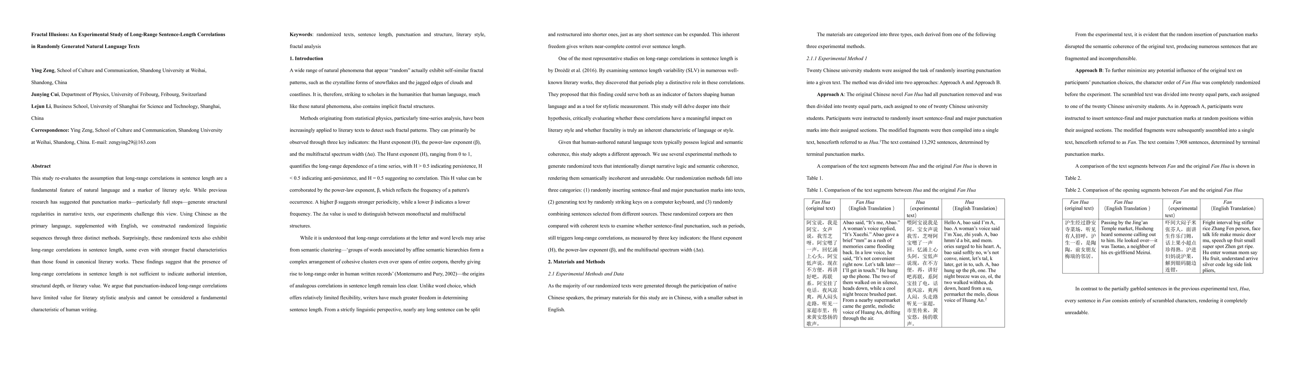 This study re-evaluates the assumption that long-range correlations in sentence length are a fundamental feature of natural language and a marker of literary style. While previous research has suggested that punctuation marks--particularly full stops--generate structural regularities in narrative texts, our experiments challenge this view. Using Chinese as the primary language, supplemented with English, we constructed randomized linguistic sequences through three distinct methods. Surprisingly, these randomized texts also exhibit long-range correlations in sentence length, some even with stronger fractal characteristics than those found in canonical literary works. These findings suggest that the presence of long-range correlations in sentence length is not sufficient to indicate authorial intention, structural depth, or literary value. We argue that punctuation-induced long-range correlations have limited value for literary stylistic analysis and cannot be considered a fundamental characteristic of human writing.