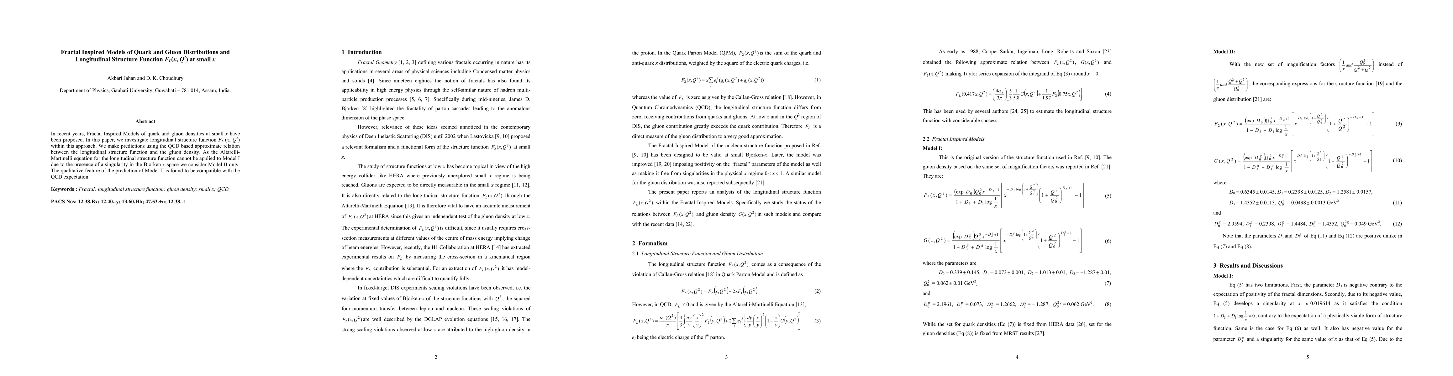 In recent years, Fractal Inspired Models of quark and gluon densities at small x have been proposed. In this paper, we investigate longitudinal structure function F-L (x, Q2) within this approach. We make predictions using the QCD based approximate relation between the longitudinal structure function and the gluon density. As the Altarelli-Martinelli equation for the longitudinal structure function cannot be applied to Model I due to the presence of a singularity in the Bjorken x-space we consider Model II only. The qualitative feature of the prediction of Model II is found to be compatible with the QCD expectation.