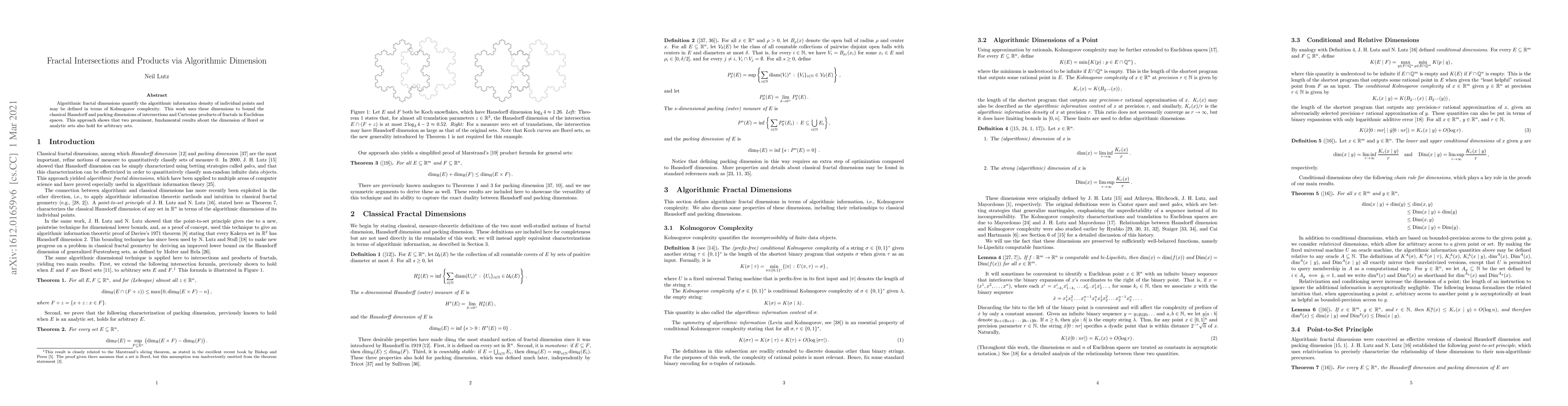 The research distinguishes itself by applying algorithmic information theory to generalize fundamental results about fractal dimensions, providing simpler and more intuitive proofs.