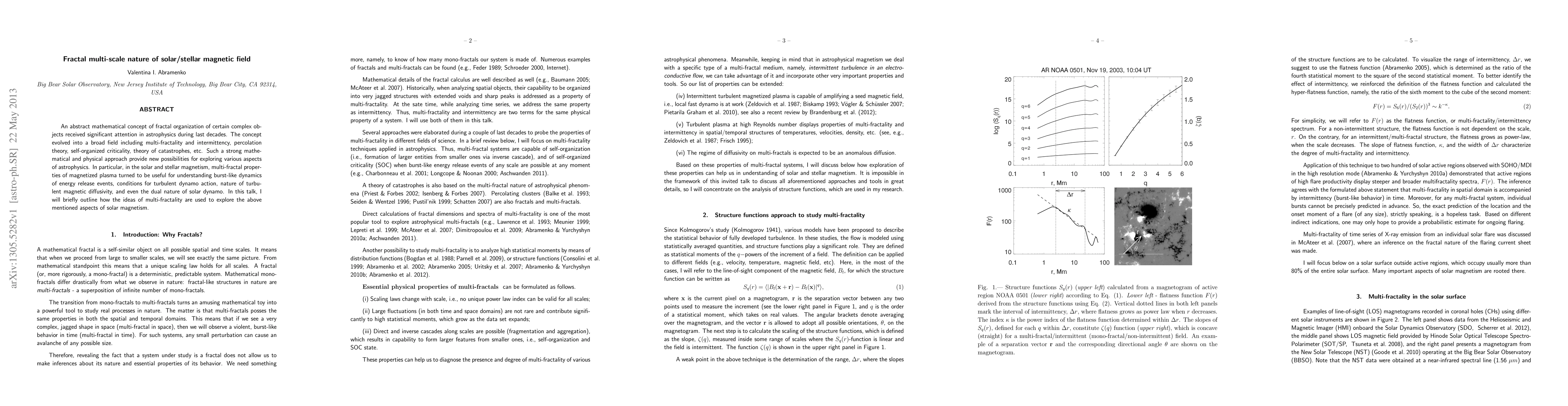 This paper reviews the application of fractal and multi-fractal concepts in understanding solar and stellar magnetic fields, focusing on the dynamics of energy release events, turbulent dynamo action, and the nature of solar dynamo. It highlights how these mathematical frameworks enhance our comprehension of solar magnetism.