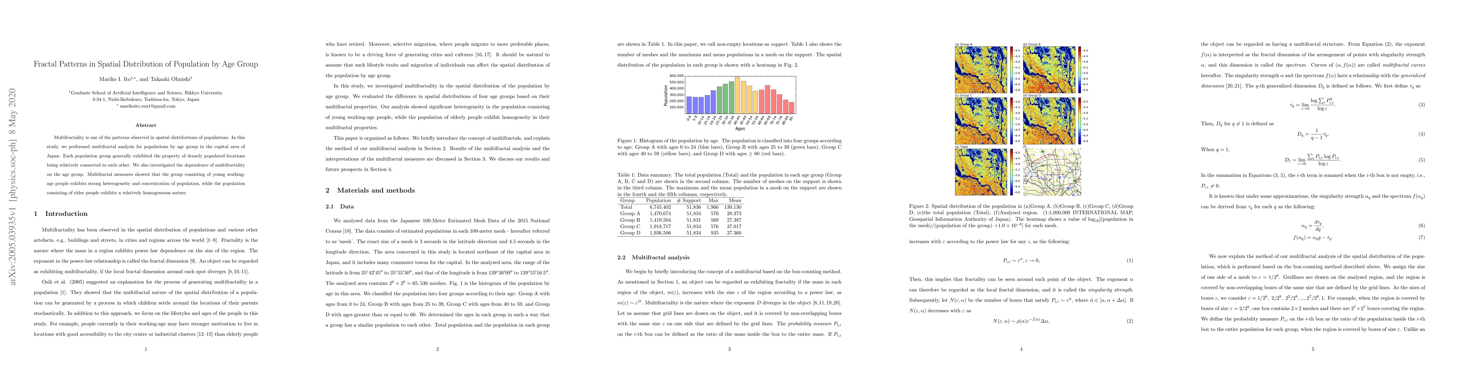 Multifractality is one of the patterns observed in spatial distributions of populations. In this study, we performed multifractal analysis for populations by age group in the capital area of Japan. Each population group generally exhibited the property of densely populated locations being relatively connected to each other. We also investigated the dependence of multifractality on the age group. Multifractal measures showed that the group consisting of young working-age people exhibits strong heterogeneity and concentration of population, while the population consisting of elder people exhibits a relatively homogeneous nature.