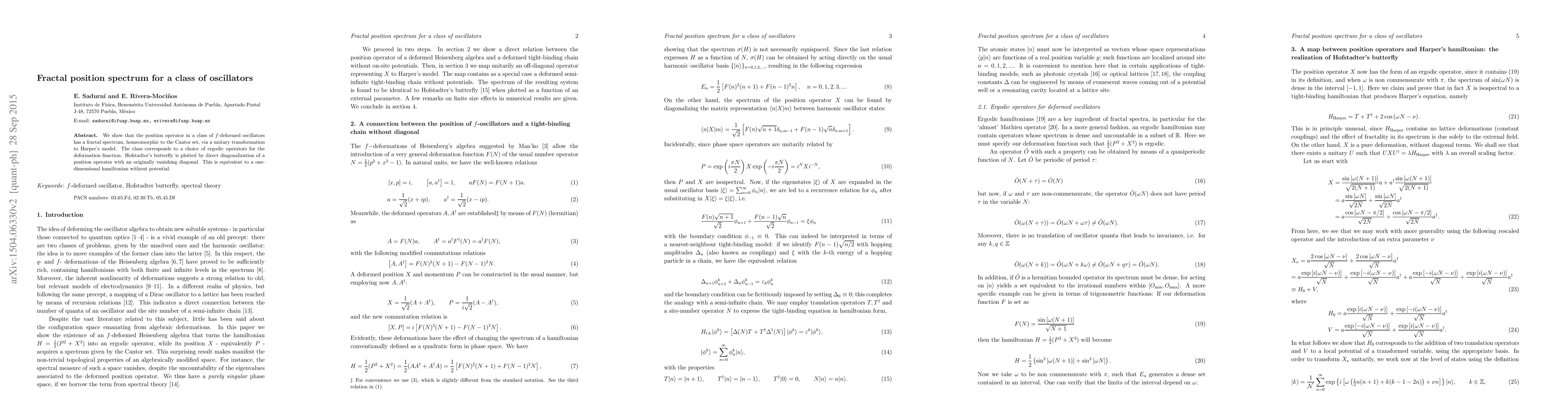 This paper demonstrates that the position operator for a specific class of $f$-deformed oscillators exhibits a fractal spectrum, analogous to the Cantor set, through a unitary transformation to Harper's model. The study also visualizes Hofstadter's butterfly via direct diagonalization of the position operator.
