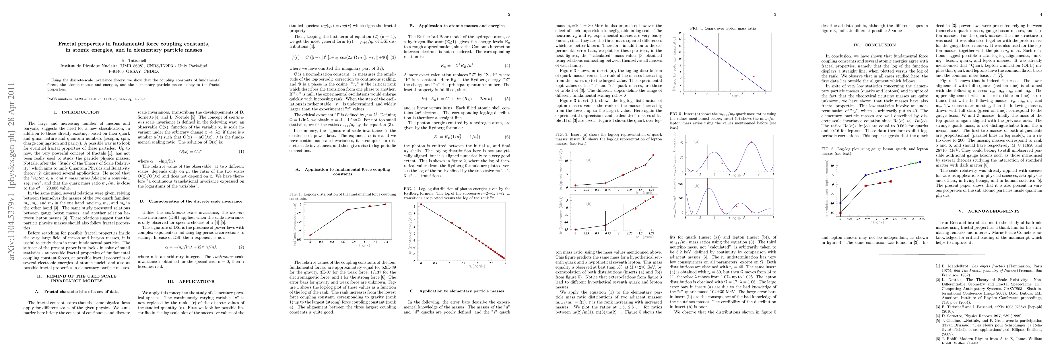 Summary: This research demonstrates that fundamental force coupling constants, atomic masses and energies, and elementary particle masses exhibit fractal properties, as revealed through the application of discrete-scale invariance theory. The findings suggest a deeper underlying structure in the fundamental laws of physics.