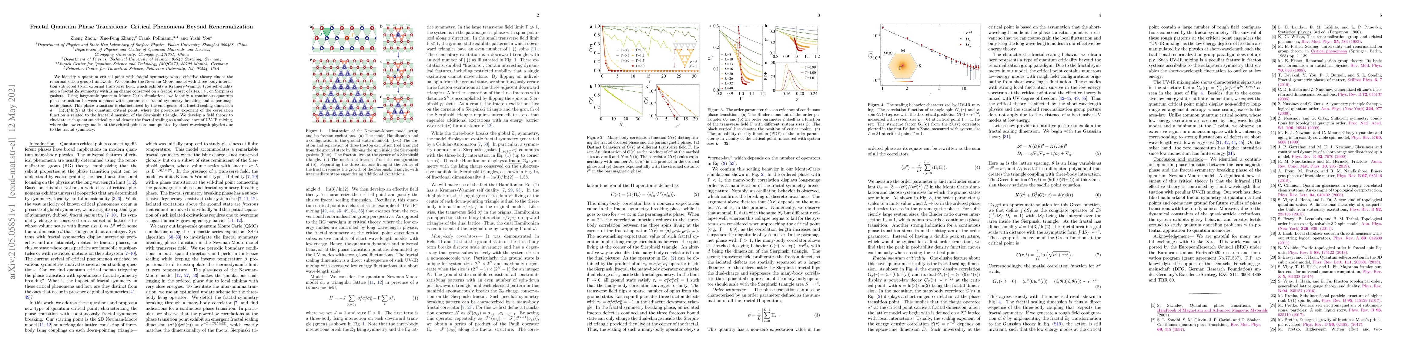 Researchers discovered a quantum phase transition with fractal symmetry in a three-body interaction model under an external transverse field, exhibiting continuous critical behavior and fractal scaling dimension.