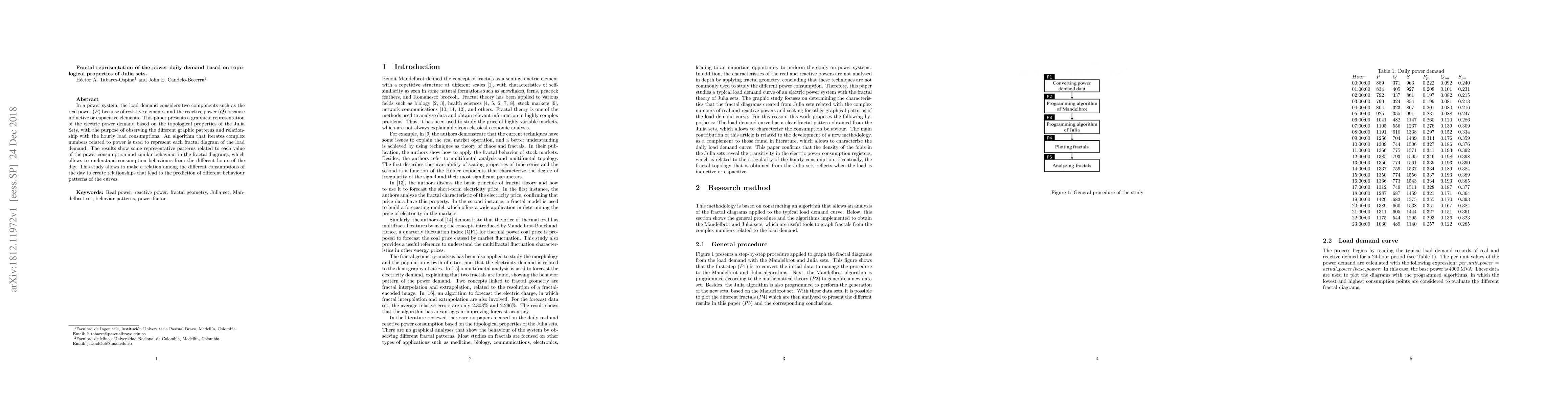 This research uses fractal representation based on Julia Sets' topological properties to graphically depict electric power demand, consisting of real and reactive power components. The method involves iterating complex numbers linked to power, revealing consumption patterns and behaviors across different hours of the day, aiding in predicting consumption trends.