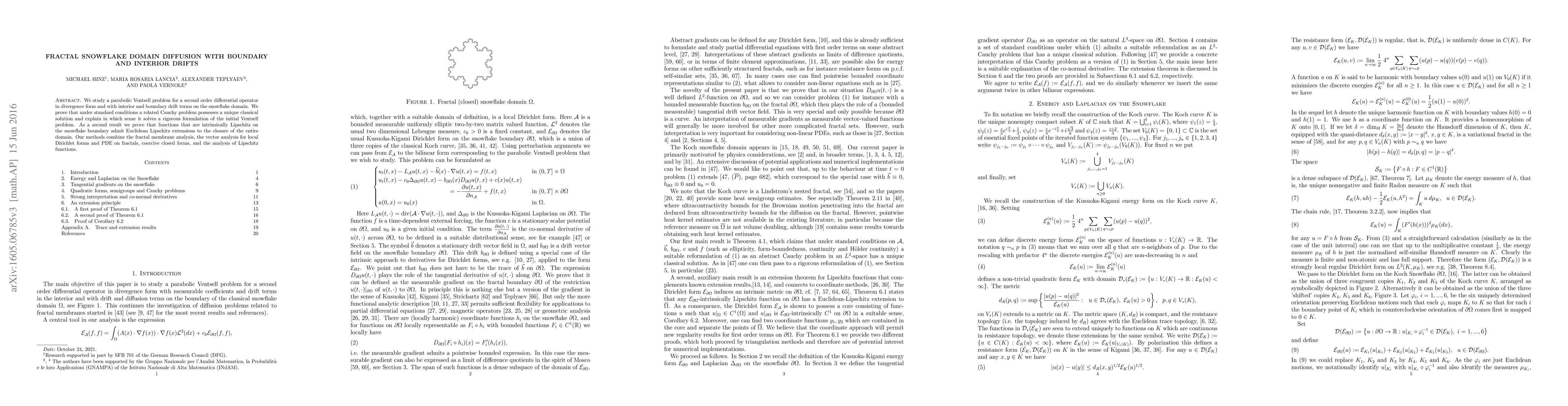 We study a parabolic Ventsell problem for a second order differential operator in divergence form and with interior and boundary drift terms on the snowflake domain. We prove that under standard conditions a related Cauchy problem possesses a unique classical solution and explain in which sense it solves a rigorous formulation of the initial Ventsell problem. As a second result we prove that functions that are intrinsically Lipschitz on the snowflake boundary admit Euclidean Lipschitz extensions to the closure of the entire domain. Our methods combine the fractal membrane analysis, the vector analysis for local Dirichlet forms and PDE on fractals, coercive closed forms, and the analysis of Lipschitz functions.