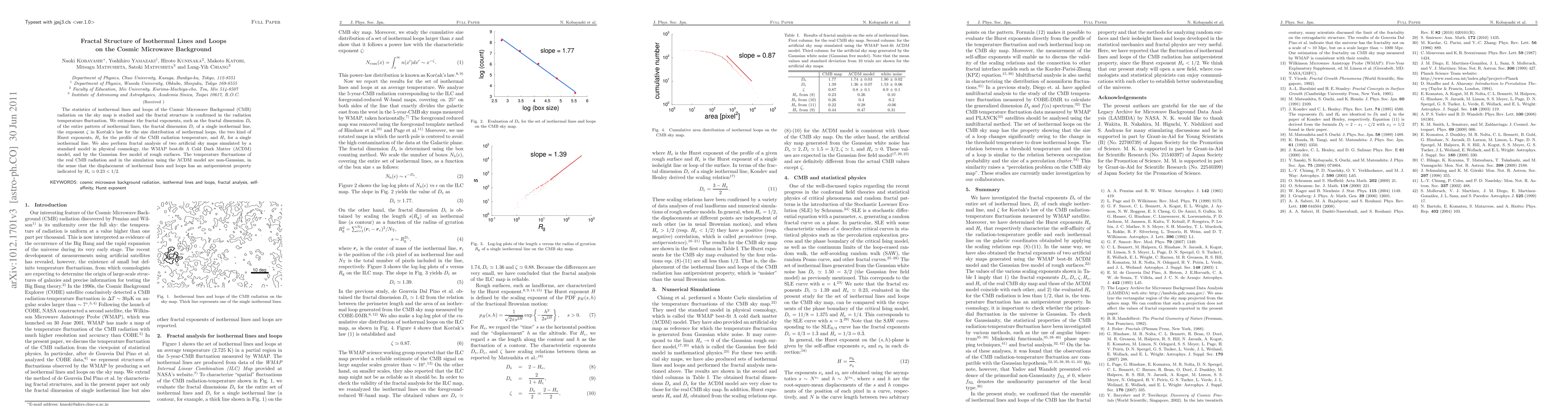 The statistics of isothermal lines and loops of the Cosmic Microwave Background (CMB) radiation on the sky map is studied and the fractal structure is confirmed in the radiation temperature fluctuation. We estimate the fractal exponents, such as the fractal dimension $D_{\mathrm{e}}$ of the entire pattern of isothermal lines, the fractal dimension $D_{\mathrm{c}}$ of a single isothermal line, the exponent $\zeta$ in Kor\v{c}ak's law for the size distribution of isothermal loops, the two kind of Hurst exponents, $H_{\mathrm{e}}$ for the profile of the CMB radiation temperature, and $H_{\mathrm{c}}$ for a single isothermal line. We also perform fractal analysis of two artificial sky maps simulated by a standard model in physical cosmology, the WMAP best-fit $\Lambda$ Cold Dark Matter ($\Lambda$CDM) model, and by the Gaussian free model of rough surfaces. The temperature fluctuations of the real CMB radiation and in the simulation using the $\Lambda$CDM model are non-Gaussian, in the sense that the displacement of isothermal lines and loops has an antipersistent property indicated by $H_{\mathrm{e}} \simeq 0.23 < 1/2$.