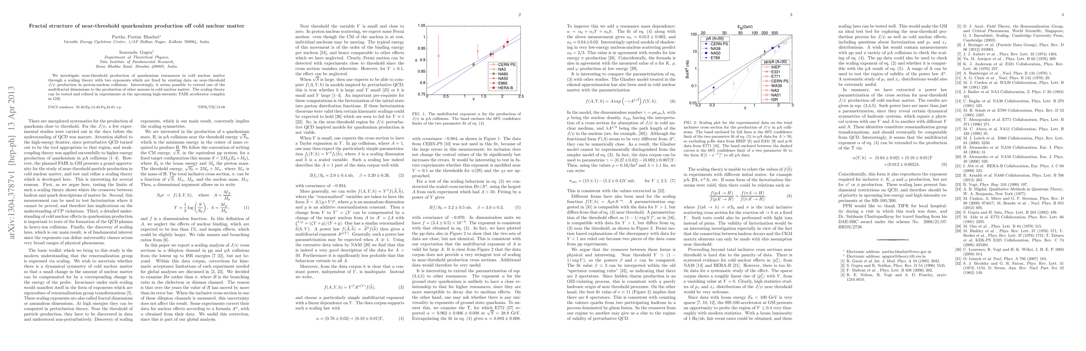We investigate near-threshold production of quarkonium resonances in cold nuclear matter through a scaling theory with two exponents which are fixed by existing data on near-threshold J/psi production in proton-nucleus collisions. Interestingly, it seems possible to extend one of the multifractal dimensions to the production of other mesons in cold nuclear matter. The scaling theory can be tested and refined in experiments at the upcoming high-intensity FAIR accelerator complex in GSI.