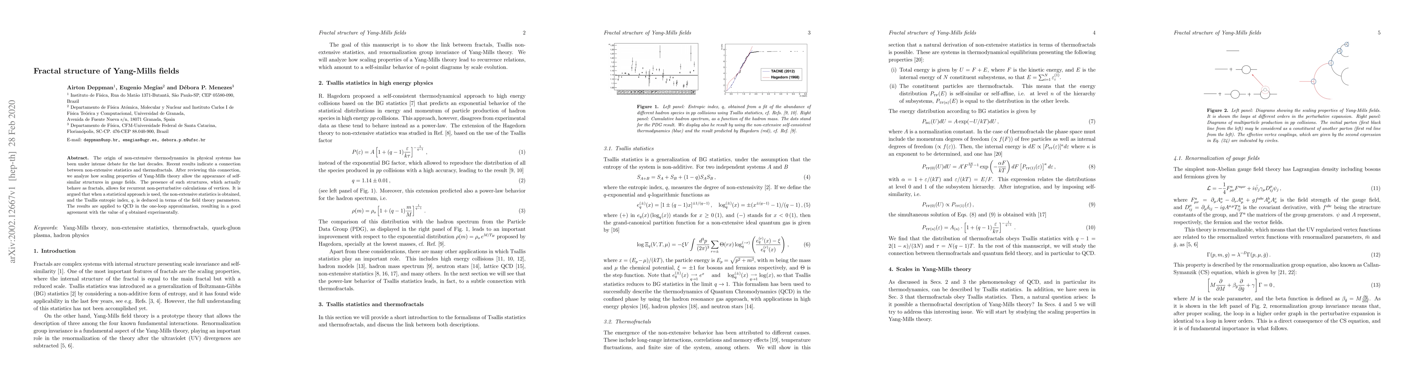 This paper explores the fractal structure in Yang-Mills fields, linking non-extensive thermodynamics to thermofractals and demonstrating how scaling properties enable self-similar fractal structures in gauge fields. It concludes that non-extensive statistics, including the Tsallis entropic index $q$, can be derived from these fractal structures, with results in QCD matching experimental values.