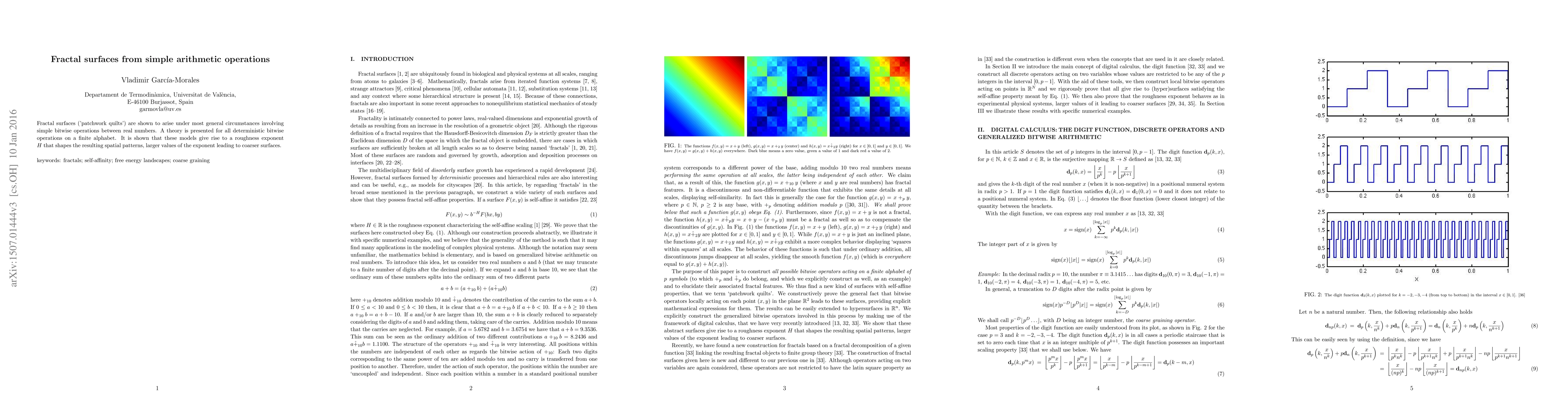 Fractal surfaces can arise from simple arithmetic operations between real numbers, with the roughness exponent determining surface coarseness. A general theory is presented for deterministic bitwise operations on a finite alphabet.