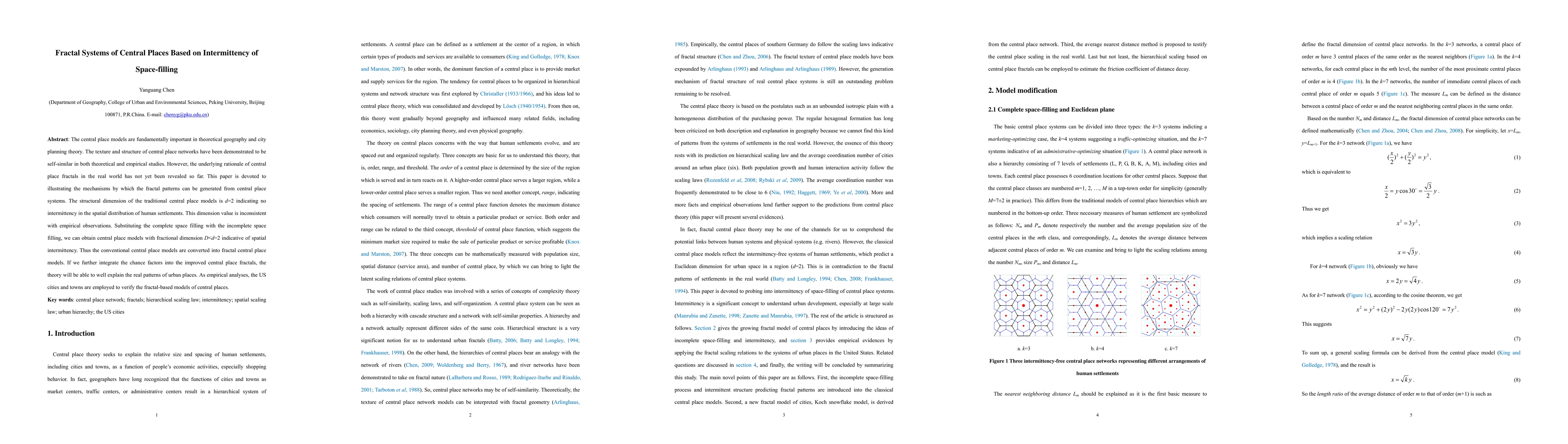 This paper explores how fractal patterns in central place systems can be generated through incomplete space filling, addressing discrepancies between traditional models and empirical observations. By incorporating spatial intermittency and chance factors, the study proposes a fractal model that better explains the real-world distribution of urban places, as demonstrated through an analysis of US cities and towns.