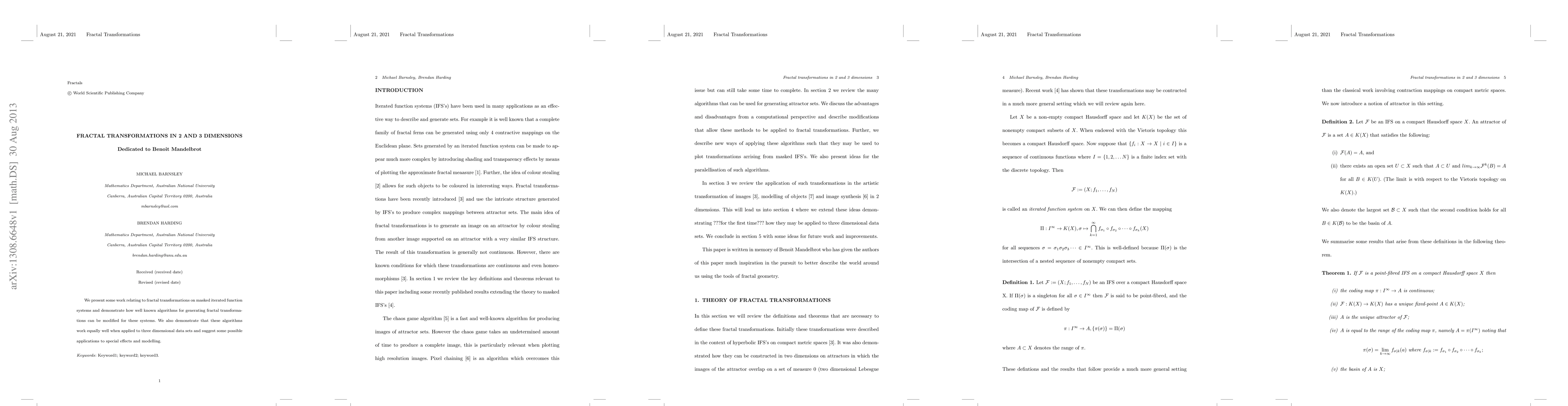 This paper explores fractal transformations in both 2D and 3D through masked iterated function systems, showing how existing algorithms can be adapted for these systems and suggesting potential applications in special effects and modeling.