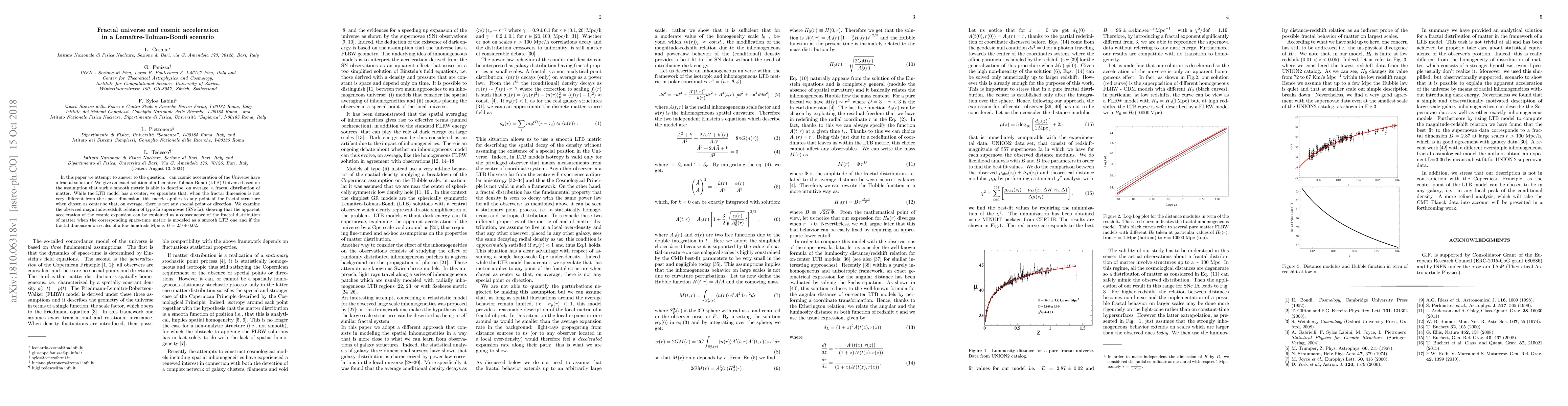 This paper explores whether cosmic acceleration can be explained by a fractal distribution of matter within a Lemaître-Tolman-Bondi (LTB) model, finding that a fractal dimension of $D=2.9 \pm 0.02$ on scales of 300 Mpc can account for the observed acceleration without a special point or direction.