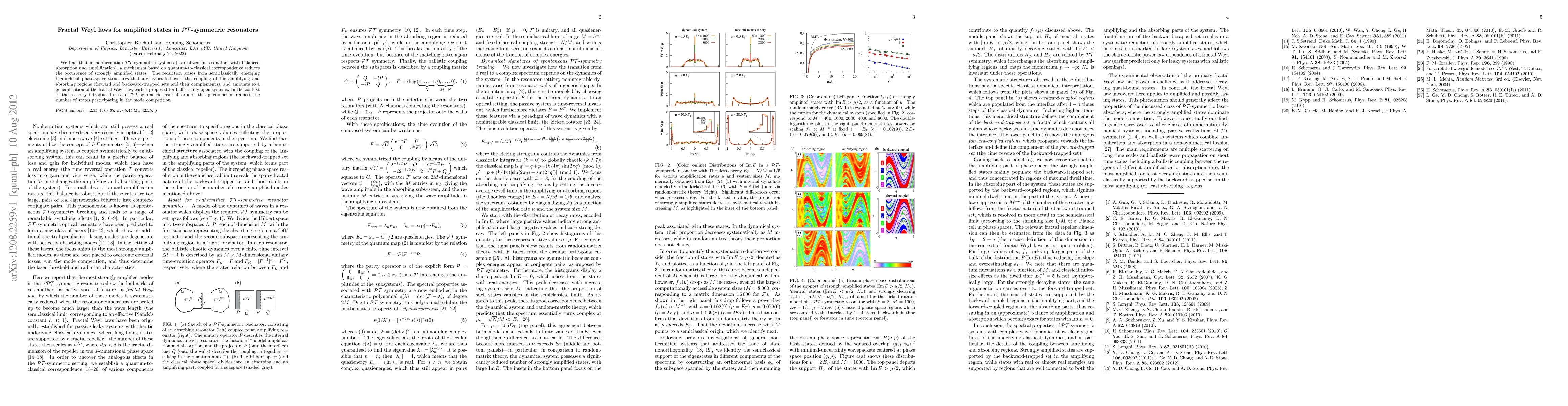 We find that in nonhermitian PT-symmetric systems (as realized in resonators with balanced absorption and amplification), a mechanism based on quantum-to-classical correspondence reduces the occurrence of strongly amplified states. The reduction arises from semiclassically emerging hierarchical phase-space structures that are associated with the coupling of the amplifying and absorbing regions (forward and backward-trapped sets and their complements), and amounts to a generalization of the fractal Weyl law, earlier proposed for ballistically open systems. In the context of the recently introduced class of PT-symmetric laser-absorbers, this phenomenon reduces the number of states participating in the mode competition.