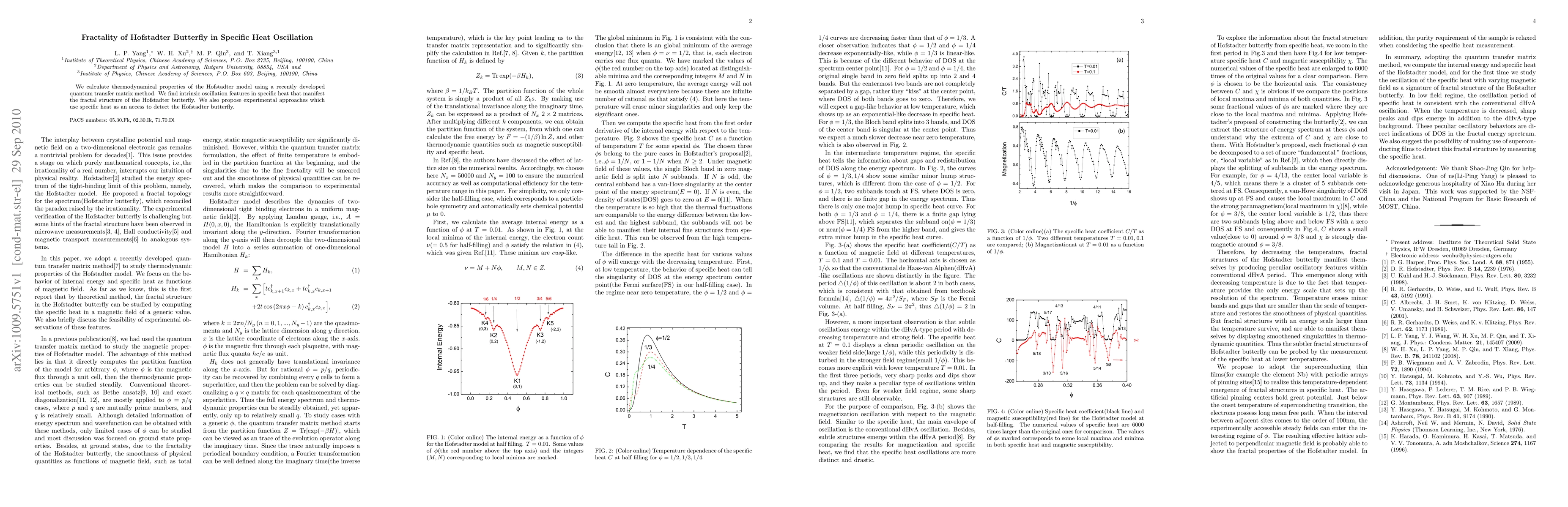 This paper utilizes a quantum transfer matrix method to analyze thermodynamic properties of the Hofstadter model, revealing fractal oscillations in specific heat that reflect the fractal nature of the Hofstadter butterfly, and suggests experimental methods to detect these oscillations.