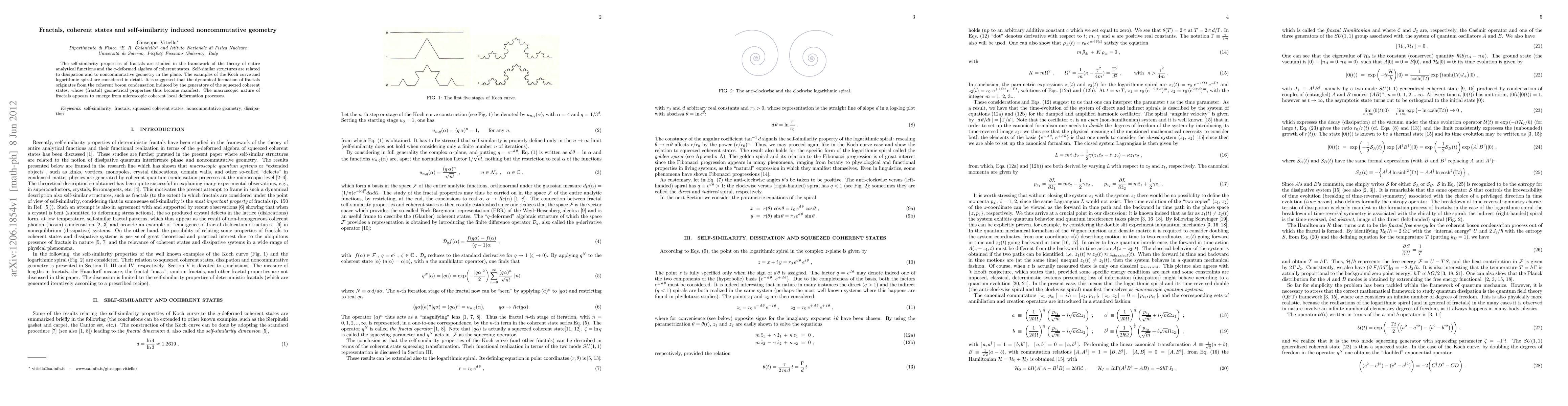 The paper presents a novel approach to understanding fractals by connecting their self-similarity properties to coherent states and noncommutative geometry, introducing a fractal Hamiltonian and free energy to describe the underlying quantum dynamics.