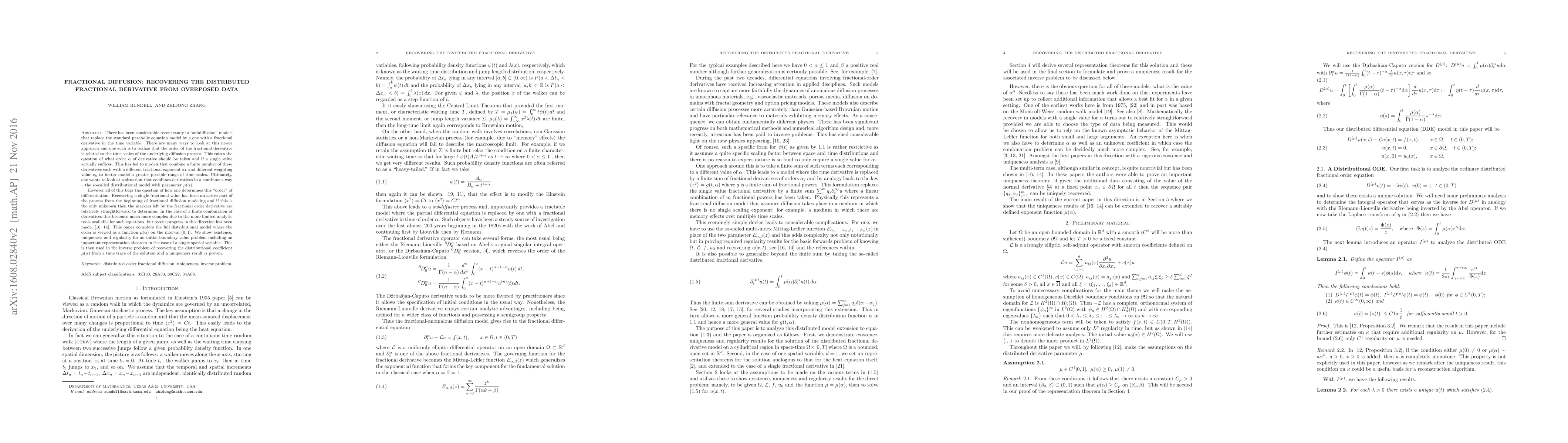 This paper investigates the distributional model of fractional diffusion, where the fractional derivative order is a function \(\mu(\alpha)\). It establishes existence, uniqueness, and regularity for an initial-boundary value problem and addresses the inverse problem of recovering \(\mu(\alpha)\) from overposed data, proving a uniqueness result.