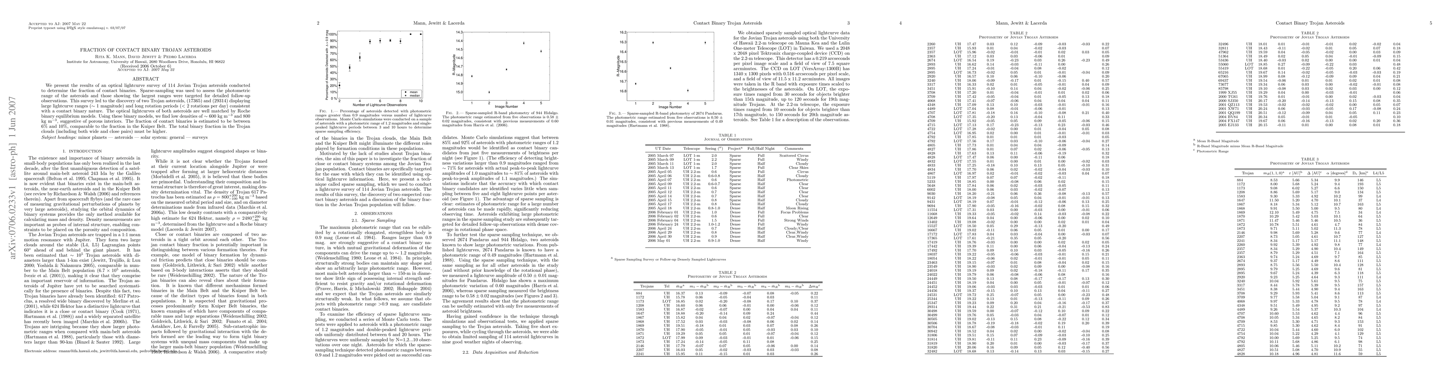 This study surveyed 114 Jovian Trojan asteroids to determine the fraction of contact binaries, finding two with large lightcurve ranges indicative of contact binaries. The estimated fraction of contact binaries among Trojans is 6-10%, similar to the Kuiper Belt, suggesting a higher total binary fraction in Trojan clouds.