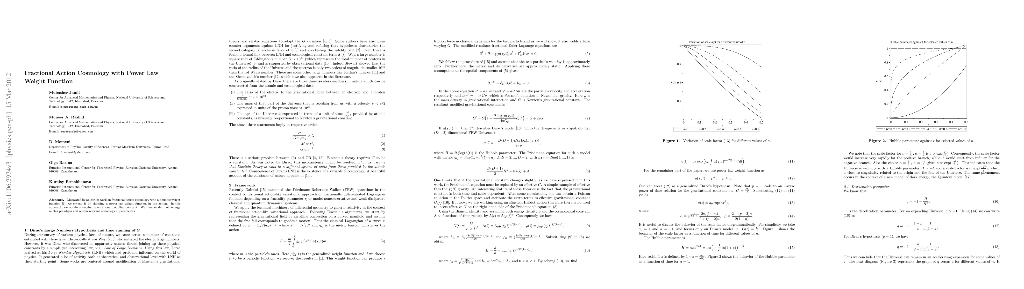 Researchers extend fractional-action cosmology to include a power-law weight function, leading to a varying gravitational coupling constant and new insights into dark energy and cosmological parameters.