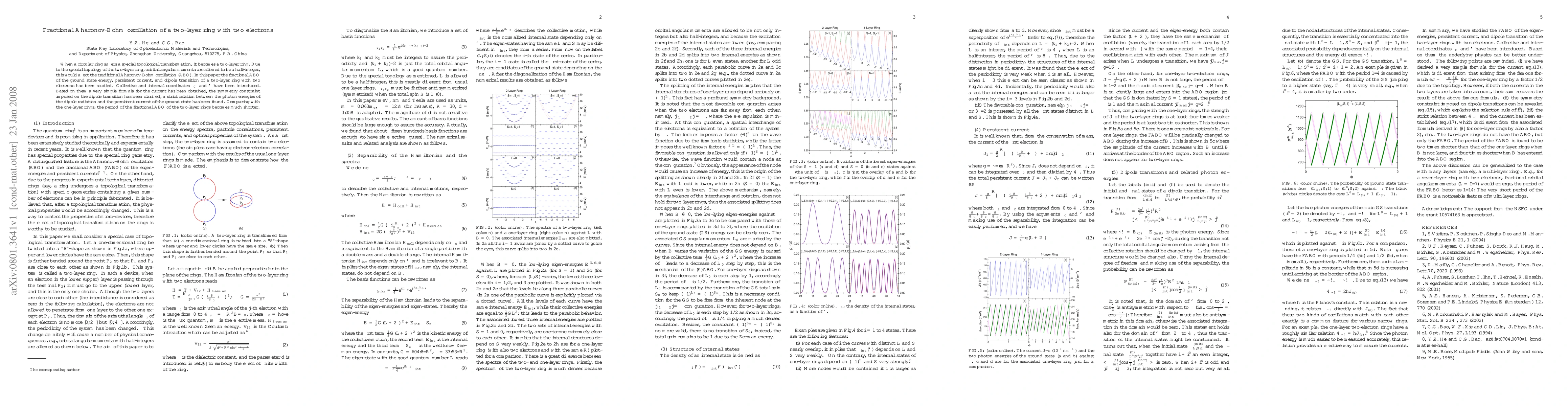 When a circular ring suffers a special topological transformation, it becomes a two-layer ring. Due to the special topology of the two-layer ring, orbital angular momenta are allowed to be a half-integer, this would affect the traditional Aharonov-Bohm oscillation (ABO). In this paper the fractional ABO of the ground state energy, persistent current, and dipole transition of a two-layer ring with two electrons has been studied. Collective and internal coordinates $\theta_{C}$ and $\phi $ have been introduced. Based on them a very simple formula for the current has been obtained, the symmetry constraint imposed on the dipole transition has been clarified, a strict relation between the photon energies of the dipole radiation and the persistent current of the ground state has been found. Comparing with the one-layer rings, the period of the fractional ABO of the two-layer rings becomes much shorter.