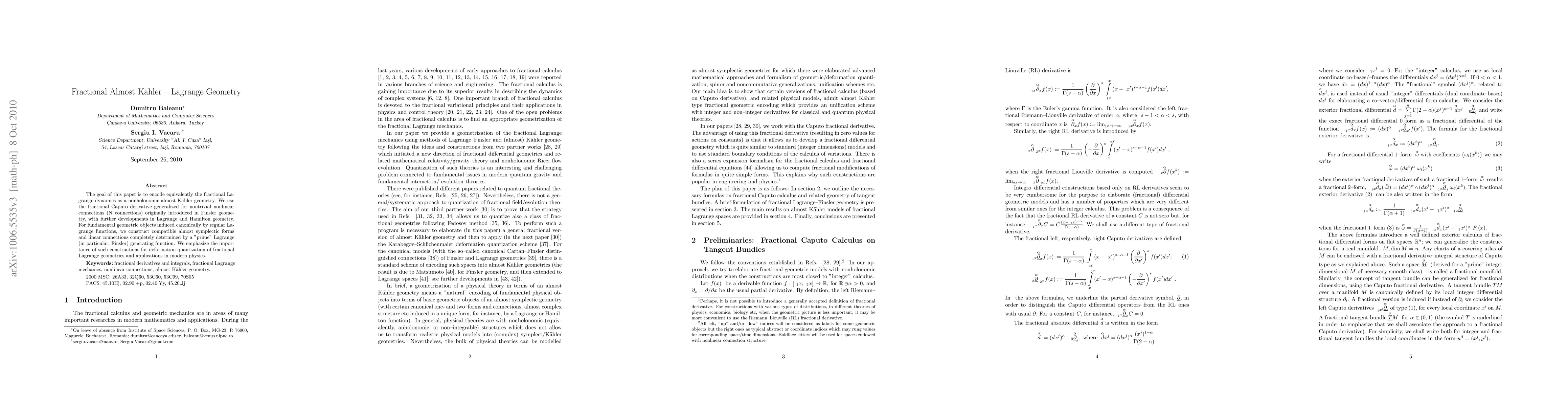 This paper encodes fractional Lagrange dynamics using nonholonomic almost Kähler geometry with fractional Caputo derivatives and N-connections. It constructs compatible almost symplectic forms and linear connections for geometric objects, emphasizing applications in deformation quantization and modern physics.