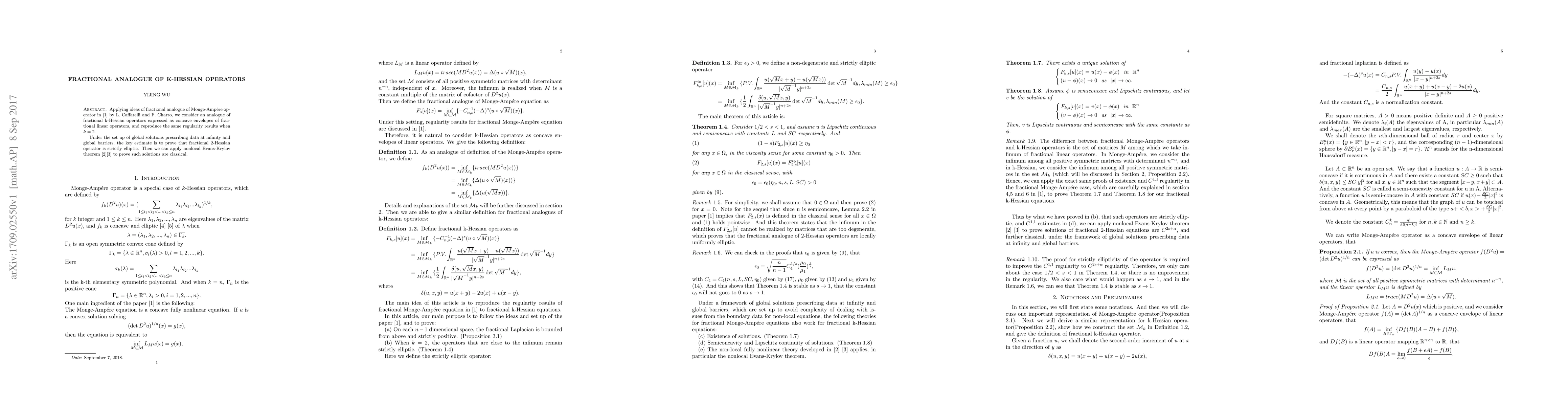 This paper introduces a fractional analogue of the k-Hessian operator, focusing on the fractional 2-Hessian operator, and proves its strict ellipticity. Using nonlocal Evans-Krylov theorem, it demonstrates that solutions are classical under global solution conditions.