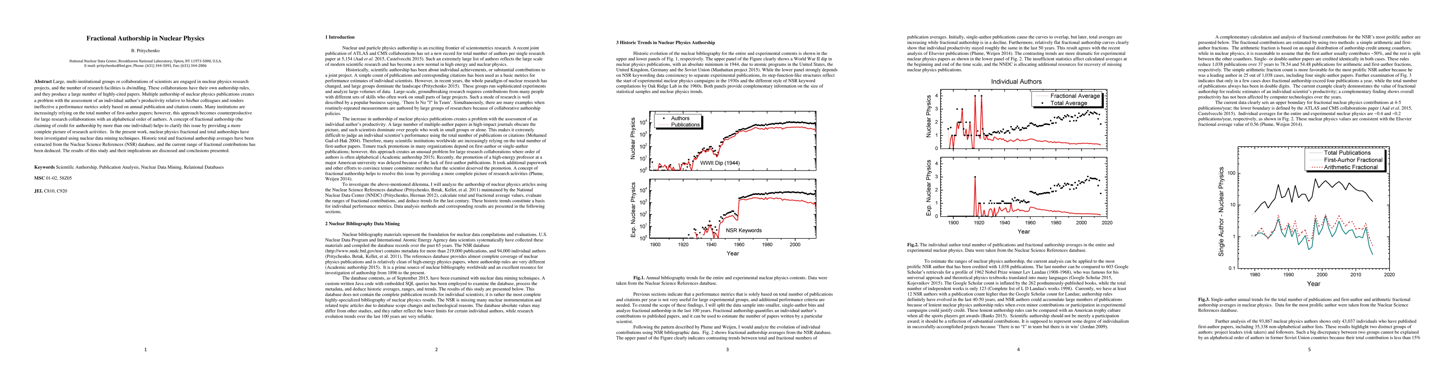 This paper investigates the concept of fractional authorship in nuclear physics, addressing the challenges of assessing individual contributions in large, multi-institutional collaborations. It uses nuclear data mining to analyze historical and current authorship trends, proposing a method to better evaluate researchers' productivity.
