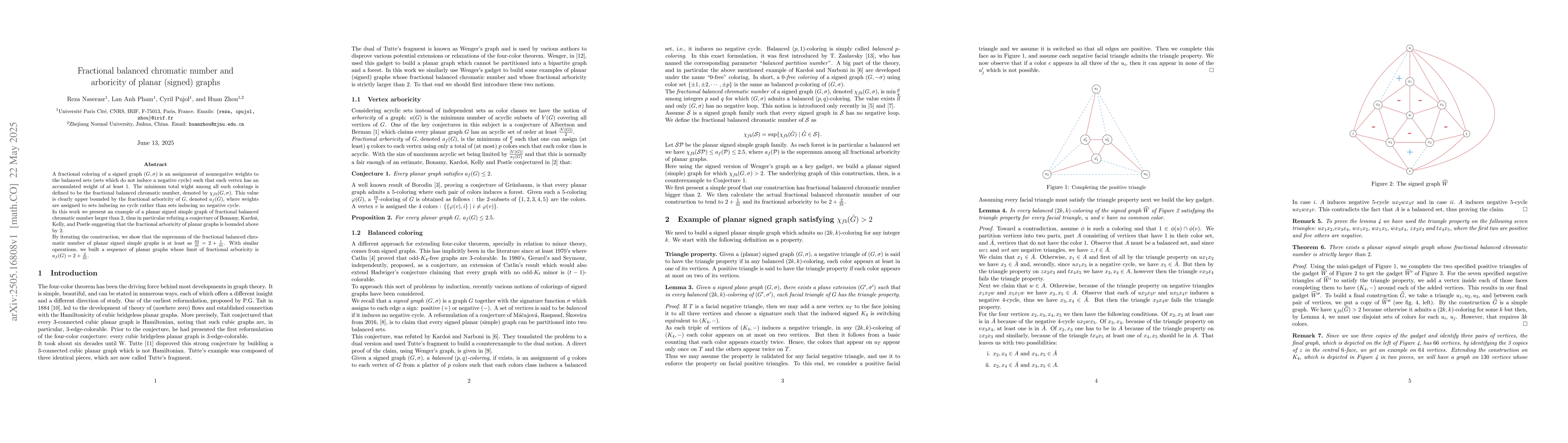 Researchers prove that the fractional balanced chromatic number of planar signed graphs can exceed 2, refuting a conjecture, and show that its supremum is at least as large as $83/41$, which is just above 2.