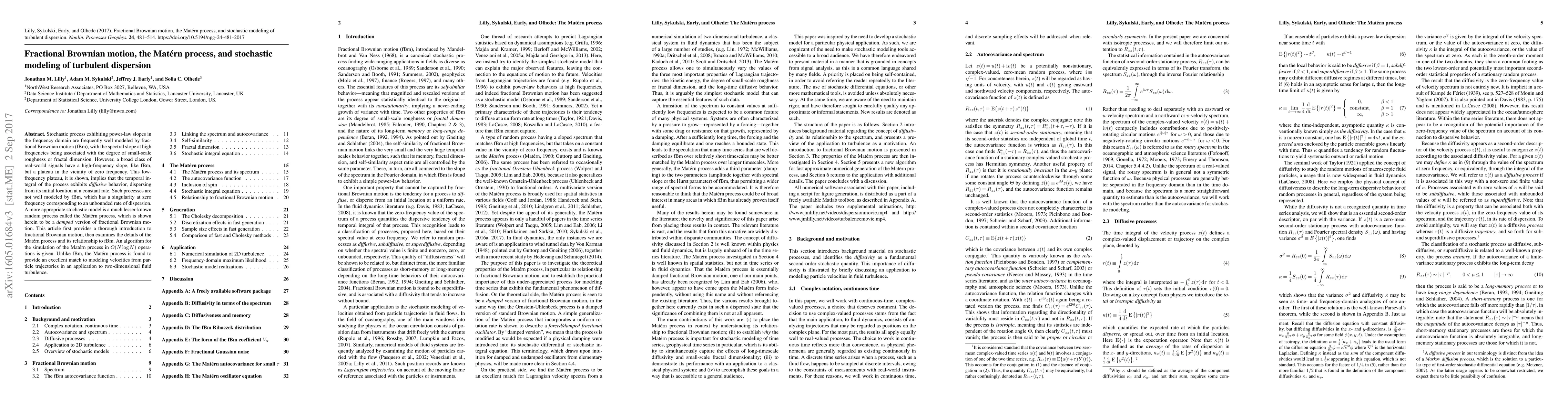 This paper introduces fractional Brownian motion and explores the Matern process as a better model for turbulent dispersion. Unlike fractional Brownian motion, the Matern process exhibits a low-frequency plateau, providing a more accurate representation of diffusive behavior in turbulent fluid dynamics.