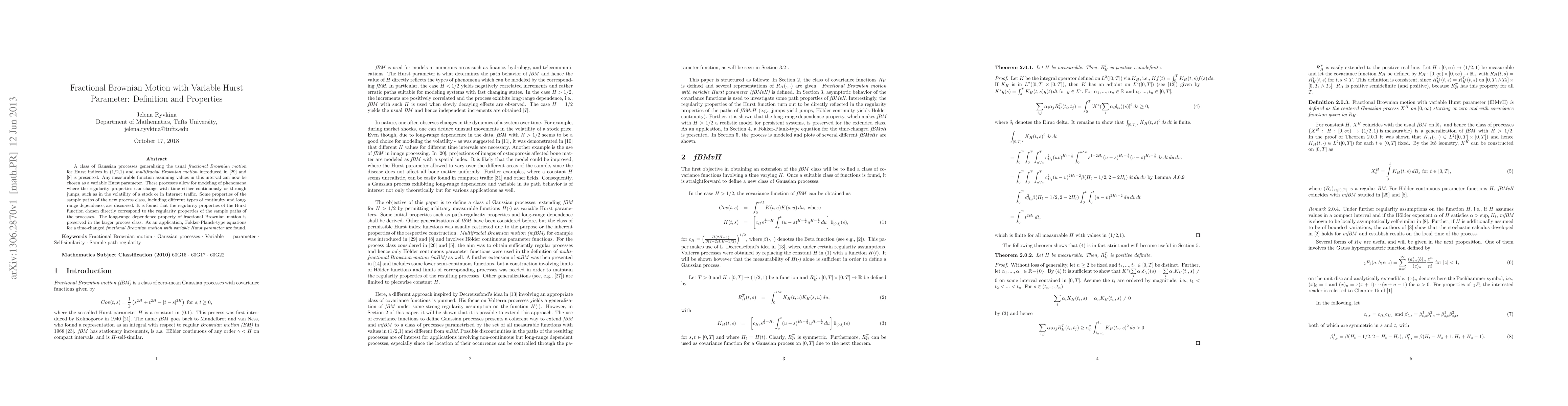 A class of Gaussian processes generalizing the usual fractional Brownian motion for Hurst indices in (1/2,1) and multifractal Brownian motion introduced in Ralchenko and Shevchenko (Theory Probab Math Stat 80, 2010) and Boufoussi et al. (Bernoulli 16(4), 2010) is presented. Any measurable function assuming values in this interval can now be chosen as a variable Hurst parameter. These processes allow for modeling of phenomena where the regularity properties can change with time either continuously or through jumps, such as in the volatility of a stock or in Internet traffic. Some properties of the sample paths of the new process class, including different types of continuity and long-range dependence, are discussed. It is found that the regularity properties of the Hurst function chosen directly correspond to the regularity properties of the sample paths of the processes. The long-range dependence property of fractional Brownian motion is preserved in the larger process class. As an application, Fokker-Planck-type equations for a time-changed fractional Brownian motion with variable Hurst parameter are found.
