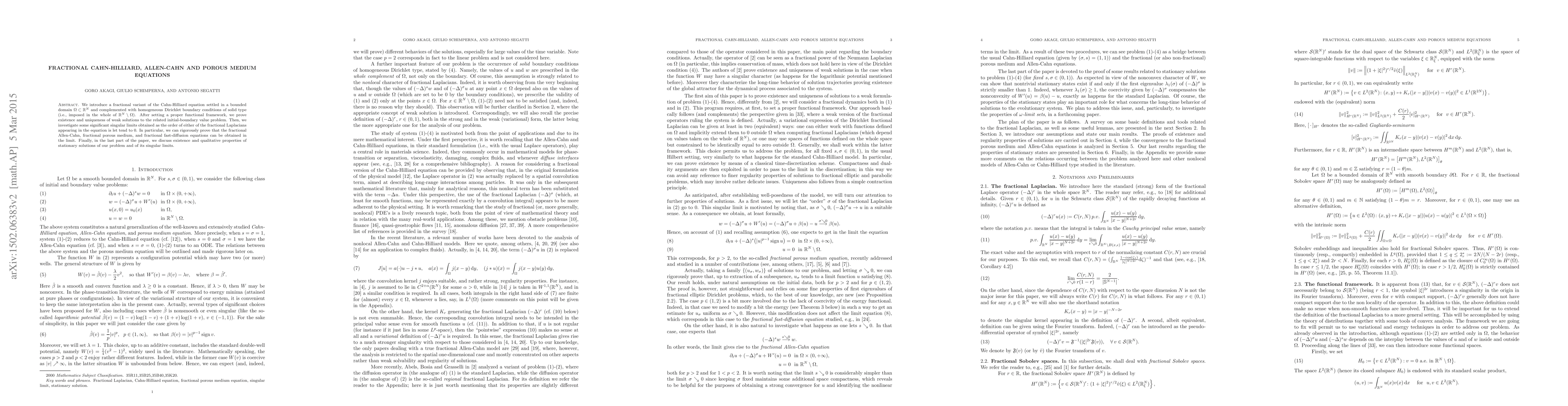 This paper introduces a fractional variant of the Cahn-Hilliard equation, proves existence and uniqueness of weak solutions, and explores singular limits leading to the fractional Allen-Cahn, porous medium, and fast-diffusion equations. It also discusses the existence and properties of stationary solutions.