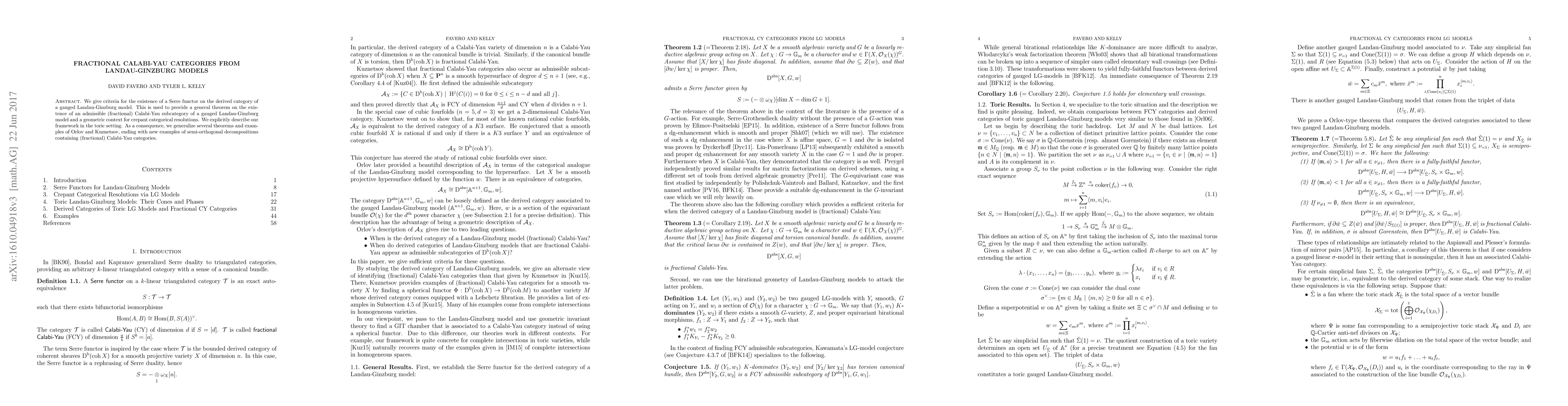 We give criteria for the existence of a Serre functor on the derived category of a gauged Landau-Ginzburg model. This is used to provide a general theorem on the existence of an admissible (fractional) Calabi-Yau subcategory of a gauged Landau-Ginzburg model and a geometric context for crepant categorical resolutions. We explicitly describe our framework in the toric setting. As a consequence, we generalize several theorems and examples of Orlov and Kuznetsov, ending with new examples of semi-orthogonal decompositions containing (fractional) Calabi-Yau categories.