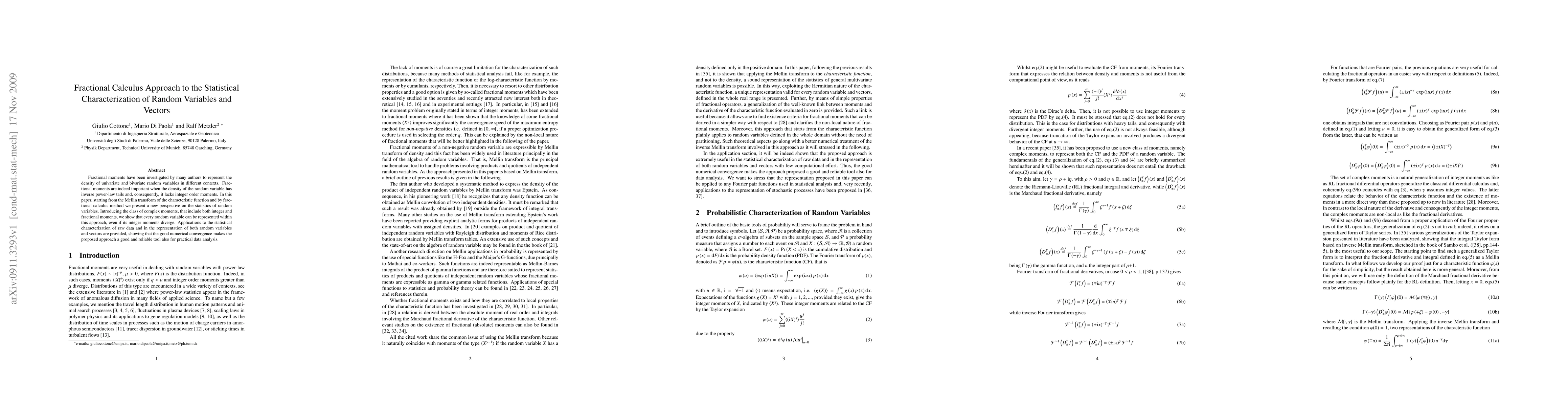 Fractional moments have been investigated by many authors to represent the density of univariate and bivariate random variables in different contexts. Fractional moments are indeed important when the density of the random variable has inverse power-law tails and, consequently, it lacks integer order moments. In this paper, starting from the Mellin transform of the characteristic function and by fractional calculus method we present a new perspective on the statistics of random variables. Introducing the class of complex moments, that include both integer and fractional moments, we show that every random variable can be represented within this approach, even if its integer moments diverge. Applications to the statistical characterization of raw data and in the representation of both random variables and vectors are provided, showing that the good numerical convergence makes the proposed approach a good and reliable tool also for practical data analysis.
