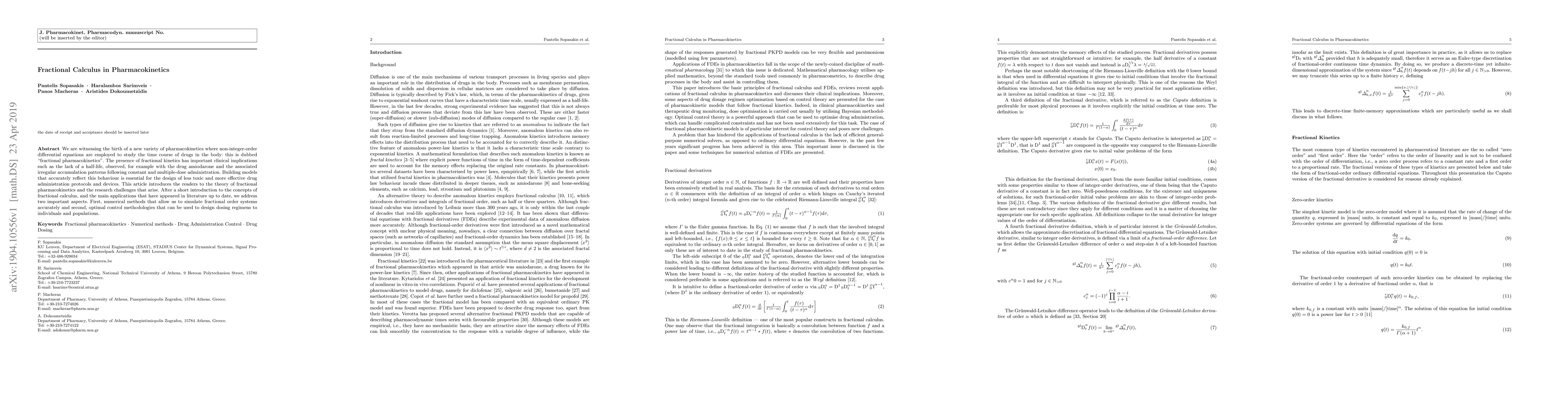 This paper introduces fractional pharmacokinetics, a new approach to studying drug behavior in the body, offering insights into designing less toxic and more effective treatment protocols.