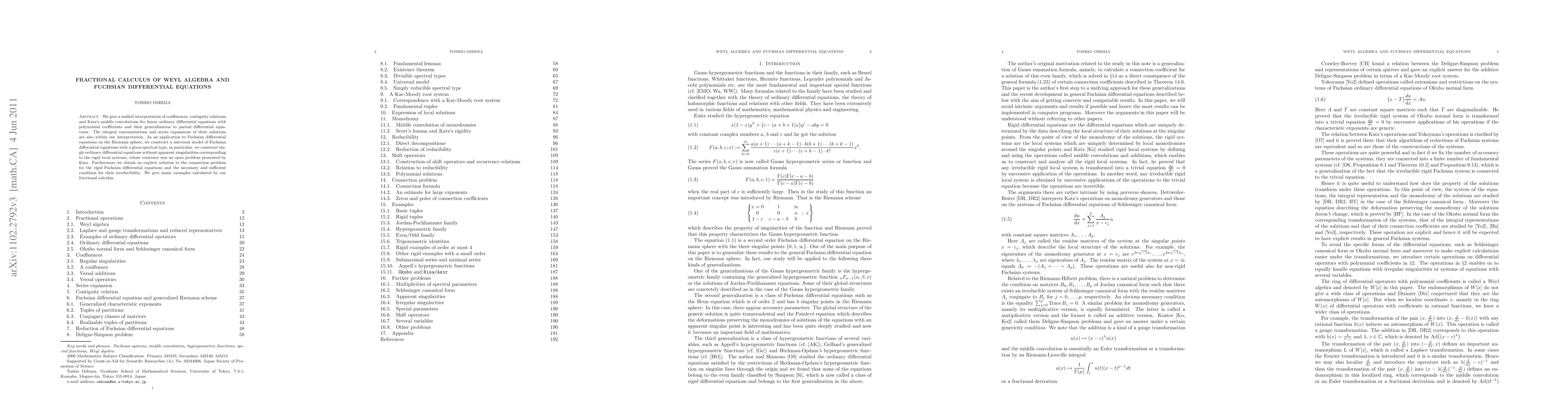 This paper unifies various mathematical concepts like confluences, contiguity relations, and Katz's middle convolutions for differential equations with polynomial coefficients, extending to partial differential equations. It constructs a universal model for Fuchsian differential equations on the Riemann sphere and provides explicit solutions to the connection problem and conditions for their irreducibility.