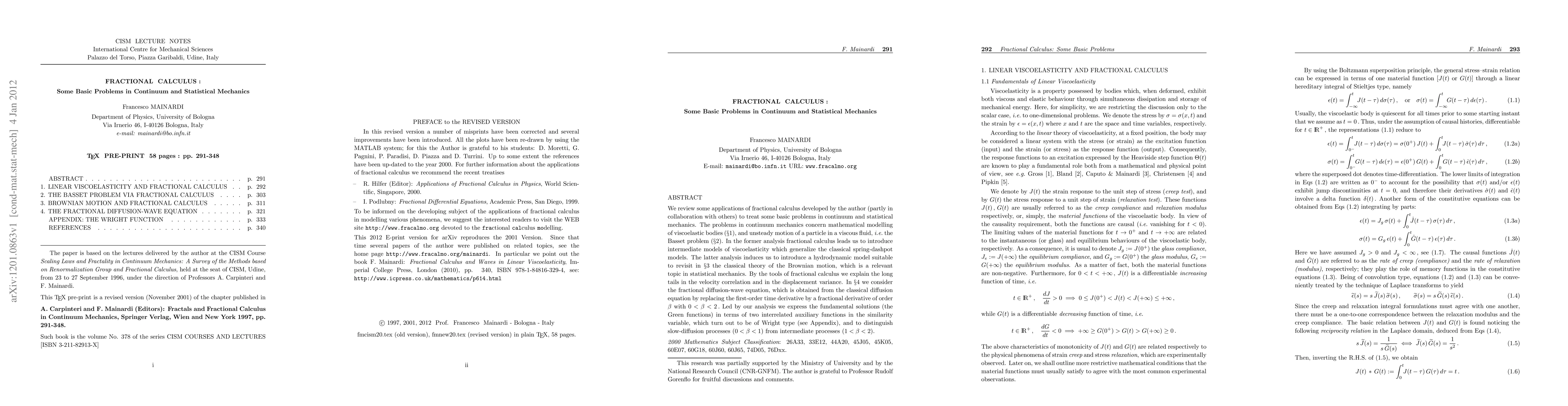 This paper reviews applications of fractional calculus to continuum and statistical mechanics, focusing on viscoelastic bodies and the Basset problem, introducing generalized models and revisiting Brownian motion. It also explores fractional diffusion-wave equations, distinguishing slow-diffusion processes from intermediate ones using Wright type functions.