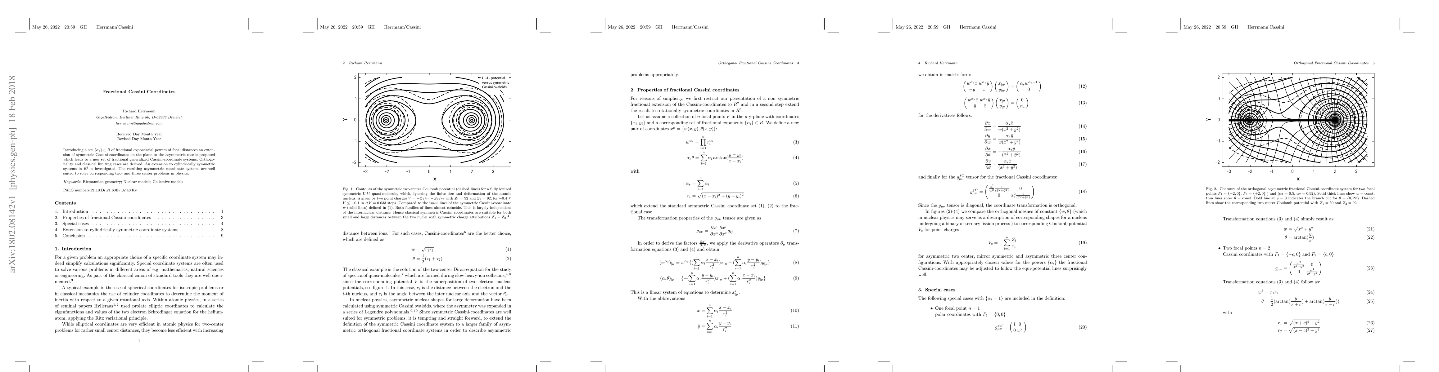 Introducing a set $\{\alpha_i\} \in R$ of fractional exponential powers of focal distances an extension of symmetric Cassini-coordinates on the plane to the asymmetric case is proposed which leads to a new set of fractional generalized Cassini-coordinate systems. Orthogonality and classical limiting cases are derived. An extension to cylindrically symmetric systems in $R^3$ is investigated. The resulting asymmetric coordinate systems are well suited to solve corresponding two- and three center problems in physics.