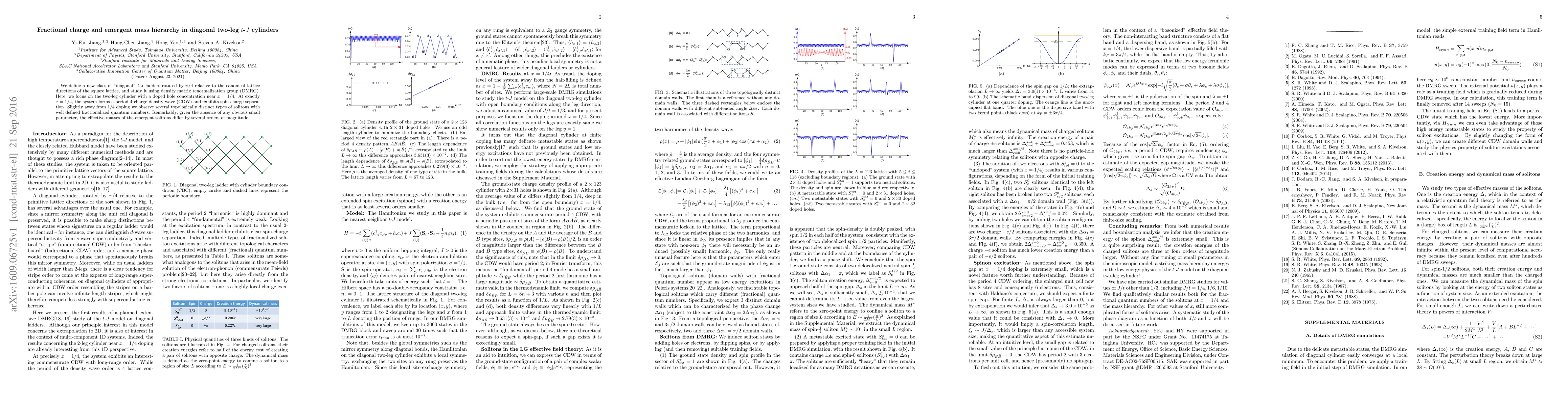 We define a new class of "diagonal" t-J ladders rotated by $\pi$/4 relative to the canonical lattice directions of the square lattice, and study it using density matrix renormalization group (DMRG). Here, we focus on the two-leg cylinder with a doped hole concentration near x = 1/4. At exactly x = 1/4, the system forms a period 4 charge density wave (CDW) and exhibits spin-charge separation. Slightly away from 1/4 doping we observe several topologically distinct types of solitons with well defined fractionalized quantum numbers. Remarkably, given the absence of any obvious small parameter, the effective masses of the emergent solitons differ by several orders of magnitude.