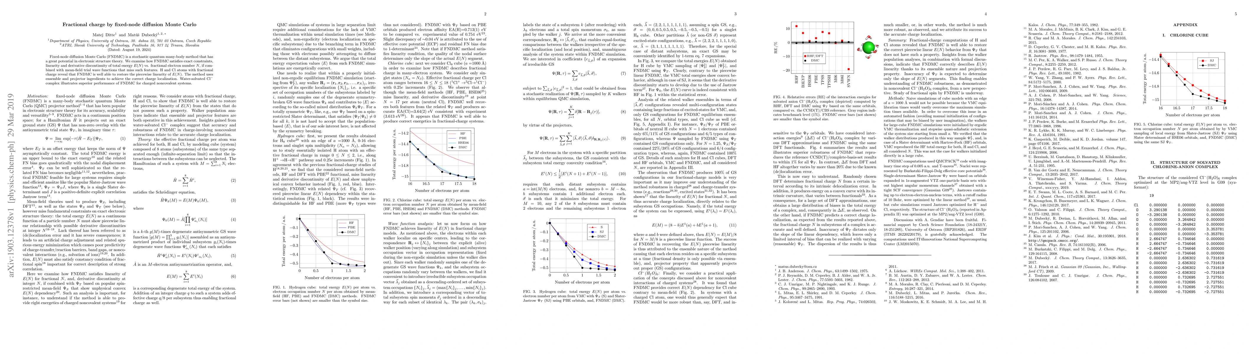 Fixed-node diffusion Monte Carlo (FNDMC) effectively restores the linearity of total energy vs. fractional electron number in systems with fractional charge, as demonstrated by H and Cl atoms. Its superior performance in charged noncovalent systems, such as water-solvated Cl$^-$, highlights its potential in electronic structure theory.