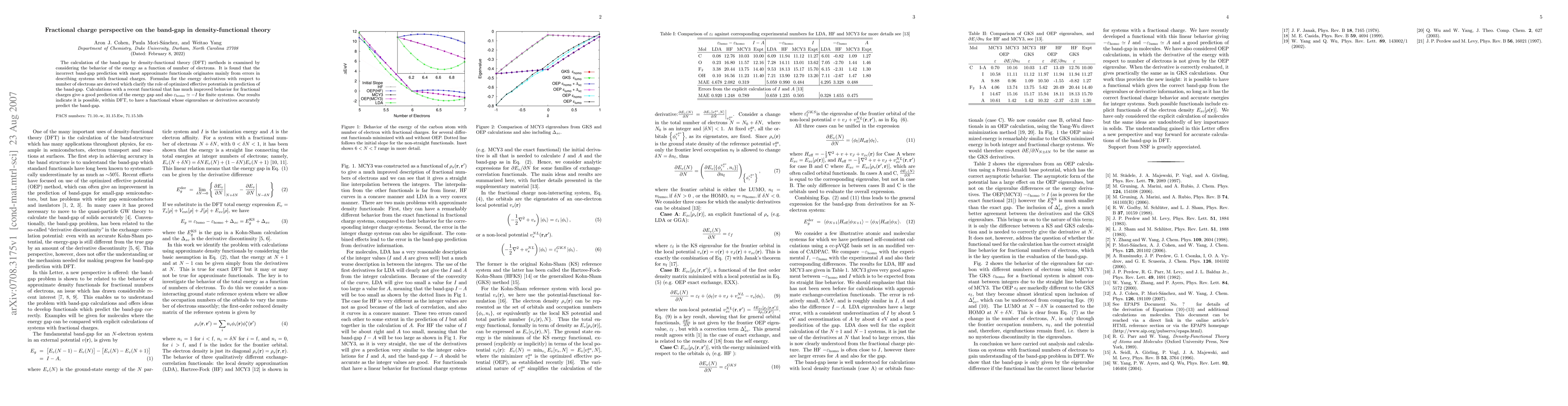 This paper explores the band-gap prediction in density-functional theory (DFT) by analyzing the energy behavior with respect to electron numbers, revealing that errors in fractional charge description cause inaccuracies. It proposes improved functionals that better handle fractional charges, leading to more accurate band-gap predictions.