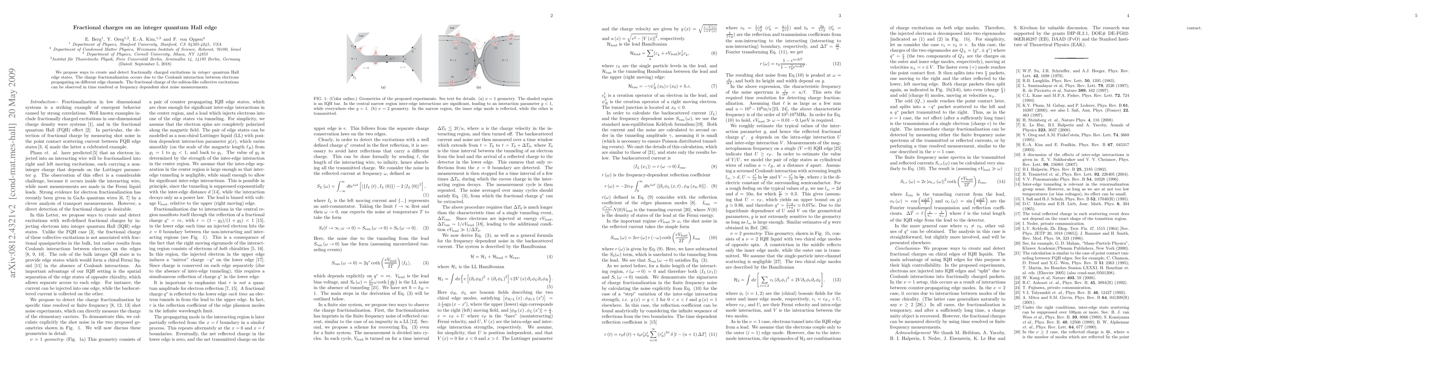 This paper investigates the creation and detection of fractionally charged excitations in integer quantum Hall states, attributing the fractional charge to Coulomb interactions between electrons in different edge channels. The fractional charges can be observed via time-resolved or frequency-dependent shot noise measurements.