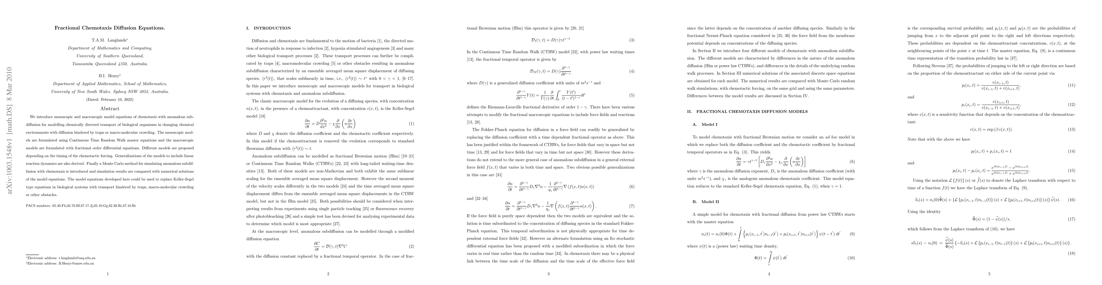 Researchers introduce new models for chemotaxis with anomalous subdiffusion to study biological organisms in changing environments, offering a more accurate representation of transport hindered by obstacles.