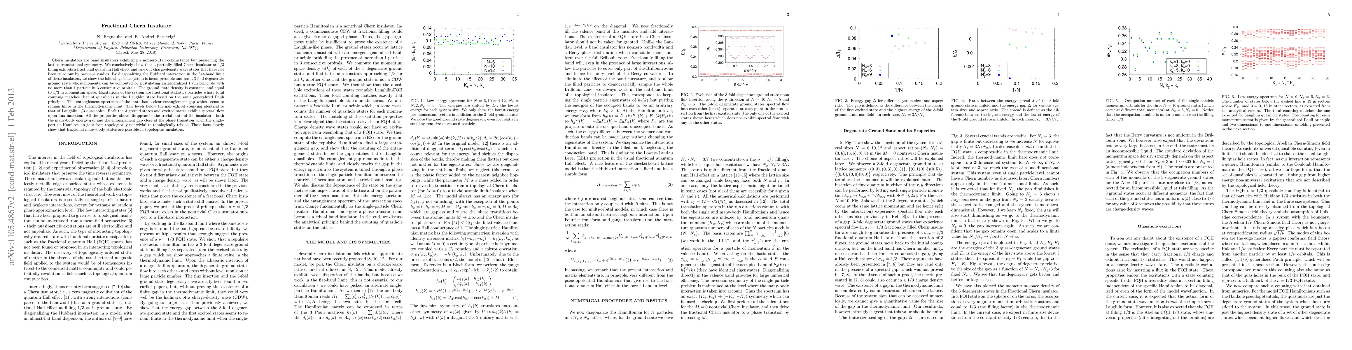 This paper demonstrates the existence of fractional quantum Hall effects in partially filled Chern insulators at 1/3 filling, showing incompressibility and a 3-fold degenerate ground state. The study confirms the presence of fractional statistics particles and an entanglement gap, illustrating that topological insulators can host fractional many-body states.