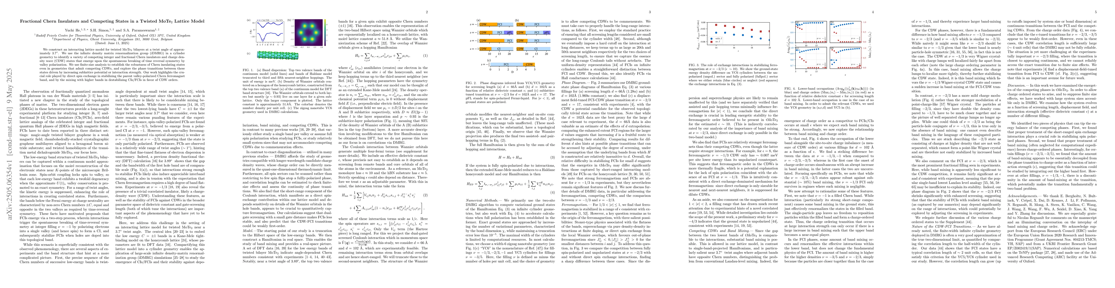 Development and application of an interacting lattice model combined with iDMRG to uncover competing Chern insulator and CDW states in twisted MoTe2 bilayers.