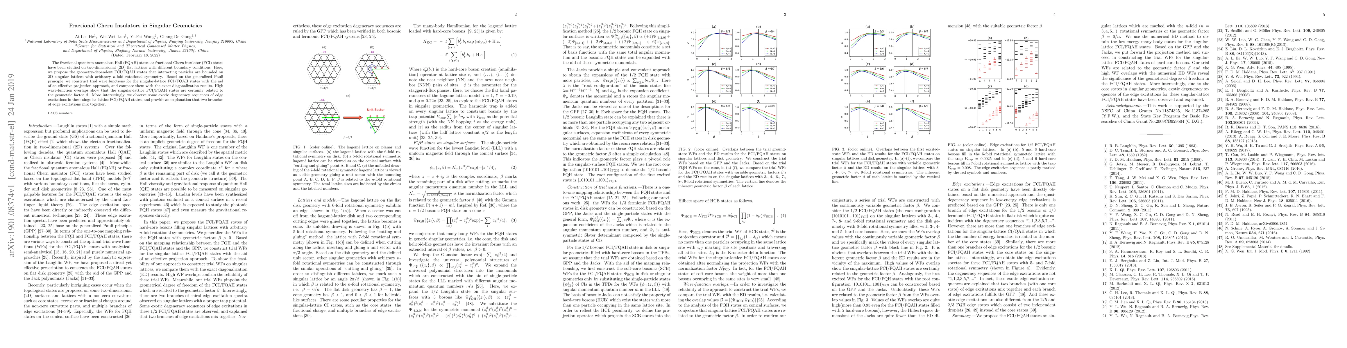 The fractional quantum anomalous Hall (FQAH) states or fractional Chern insulator (FCI) states have been studied on two-dimensional (2D) flat lattices with different boundary conditions. Here, we propose the geometry-dependent FCI/FQAH states that interacting particles are bounded on 2D singular lattices with arbitrary $n$-fold rotational symmetry. Based on the generalized Pauli principle, we construct trial wave functions for the singular-lattice FCI/FQAH states with the aid of an effective projection approach, and compare them with the exact diagonalization results. High wave-function overlaps show that the singular-lattice FCI/FQAH states are certainly related to the geometric factor $\beta$. More interestingly, we observe some exotic degeneracy sequences of edge excitations in these singular-lattice FCI/FQAH states, and provide an explanation that two branches of edge excitations mix together.